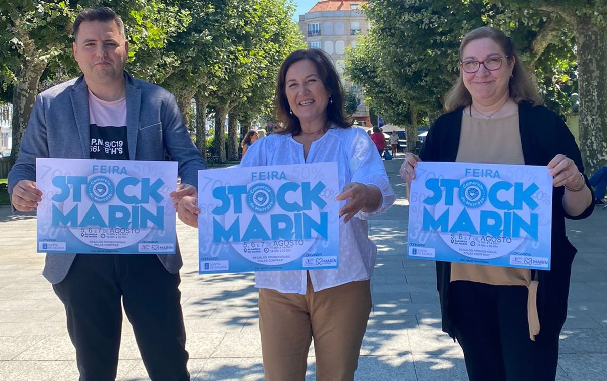La concejala de turismo y comercio, Cristina Acuña, junto con la presidenta del Centro Comercial Aberto, Catalina Conde y el gerente de la asociación comercial Yonathan Carreira, presesentaron ayer la que será “III Edición de Stock Marín”, actividad que se llevará a cabo aprovechado la totalidad de la alameda Rosalía de Castro con el montaje de carpas individuales para cada establecimiento en un total de 22 unidades de las cuales 18 tendrán una superficie de 5X5 y cuatro serán un poco más reducidas.