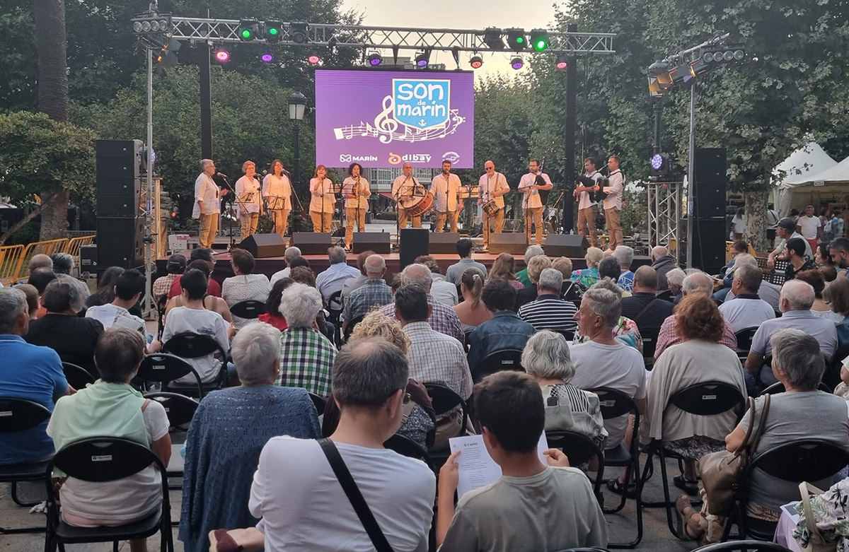 Una veintena de canciones populares con ritmos tradicionales o modificados fueron este año el programa de actuación del grupo de cantos de taberna “Os Saljariteiros” que durante dos horas con la colaboración al final del concierto de la “Charanga OT” animaron la alameda Rosalía de Castro en la segunda jornada del “Son de Marín" que hoy sábado será una cascada de actuaciones musicales desde las once de la mañana hasta la medianoche ya que cerrará el programa el increíble Ricardo Parada en el fin de fiesta.