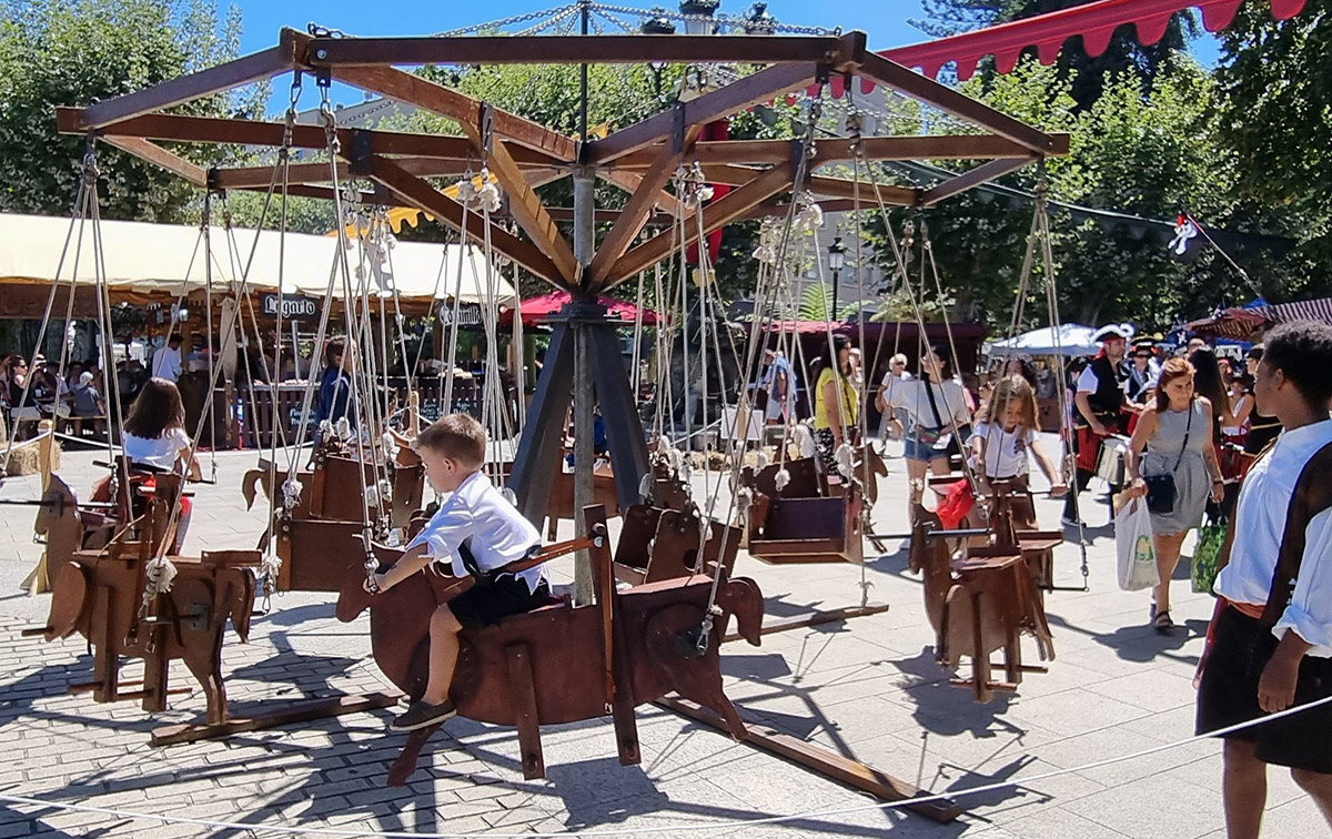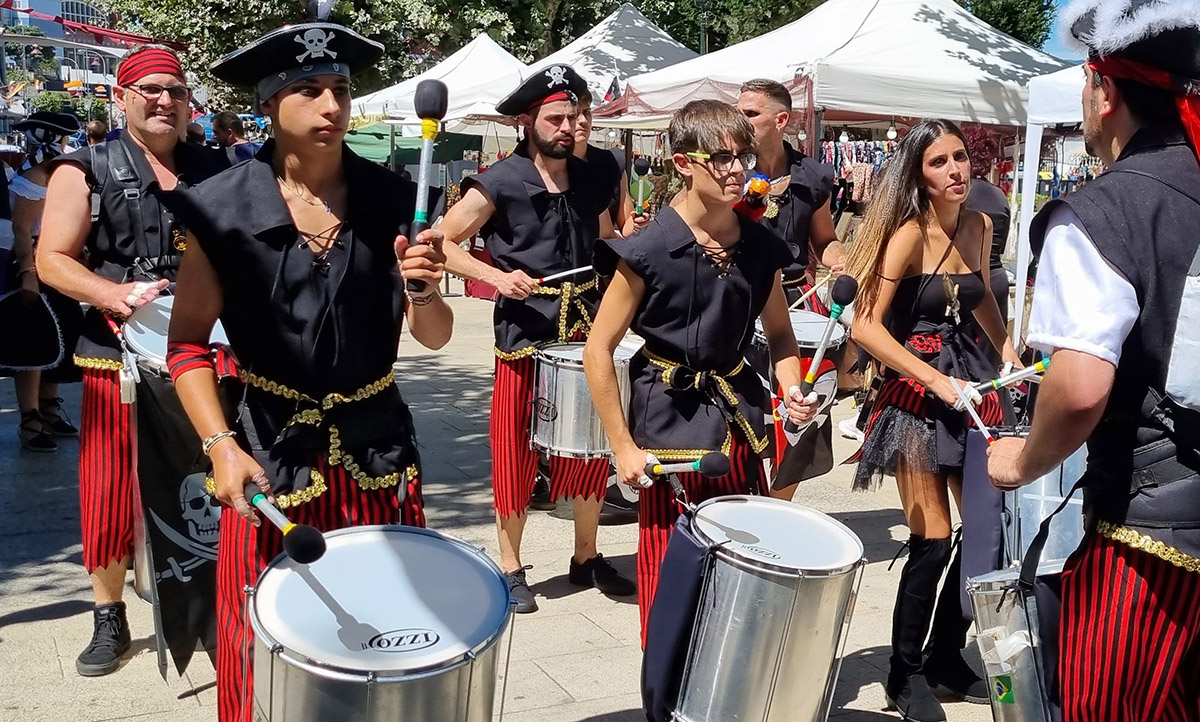 Música de batucadas y gaitas acompañan la fiesta cuyo corazón central está en la Alameda Rosalía de Castro con toda clase de atractivos artesanales y atracciones medievales para los más pequeños, además de degustación de comidas y también bebidas para que no falte nada.