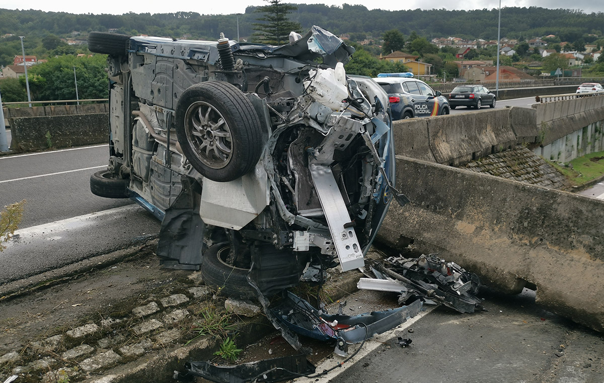 Un aparatoso accidente por causas a determinar en el atestado ya en marcha por el equipo de Tráfico se produjo en Placeres a primera hora de esta tarde con implicación de un coche policial que se salió de la vía e impactó contra la medianera que separa la PO11 de la salida hacia el Puerto de Marín en Os Placeres. Al parecer, según testigos presenciales del accidente, uno de los módulos de esta medianera impactó después del primer choque contra una furgoneta, que también resultó dañada en el accidente.
