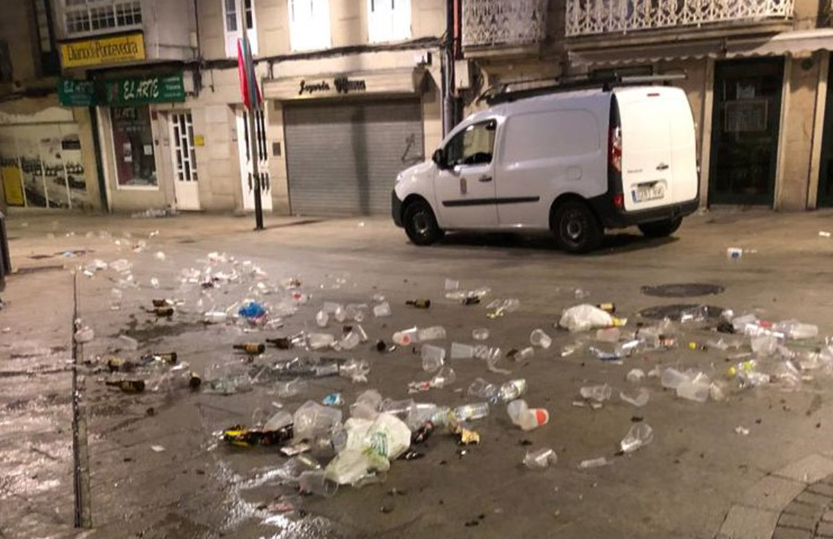 Algunos vecinos han querido mostrar también su indignación debido a los orines, vomitonas y suciedad dejadas por los participantes de la fiesta en las calles