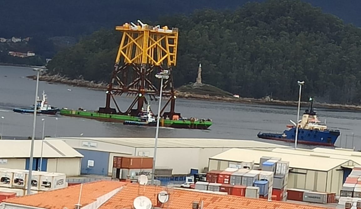 Cada vez que entra por la ría una estructura distinta a lo habitual, llama mucho la atención de quien observa el paisaje y, esta mañana, no fue menos al avistar una especie de torre lentamente arrastrada por un gran remolcador y con la vigilancia lateral de las unidades de "AmareMarín" de la flotilla concesionaria del propio puerto