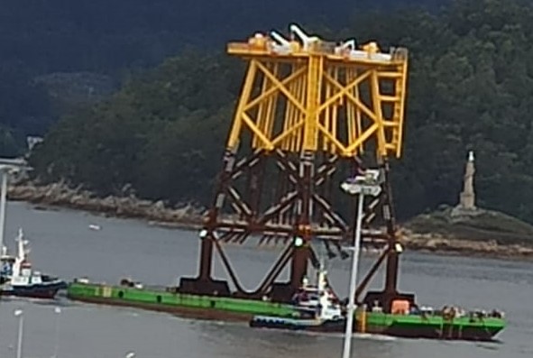 Cincuenta y ocho metros de altura de las estructura de hierro amarillo que se ha dejado ver en el Puerto de Marín este fin de semana, tiene la torre de una perforadora petrolífera con una base de 26 X 26 metros que ha llegado y volverá a salir del puerto, sobre una barcaza de 90 metros de eslora y 32 de manga con un calado de 5,15 metros y un registro de 5.220 toneladas lo que da idea de la verdadera naturaleza del conjunto que “adornó” el puerto durante estos dos últimos días, conjunto para cuyos movimientos y ataques tiene que contar con los dos remolcadores de la empresa concesionaria de este puerto, “AmareMarín”.