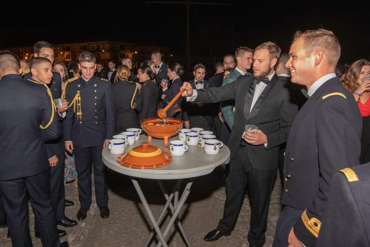 Pues, desde hace también muchos años es una tradición inexcusable aquí, y la preparan los alumnos que se irán, dentro de unas semanas, al crucero en el Juan Sebastián de Elcano siendo la denominación de “El Ciento” algo simbólico porque cada año los alumnos se van al crucero en fecha distinta.