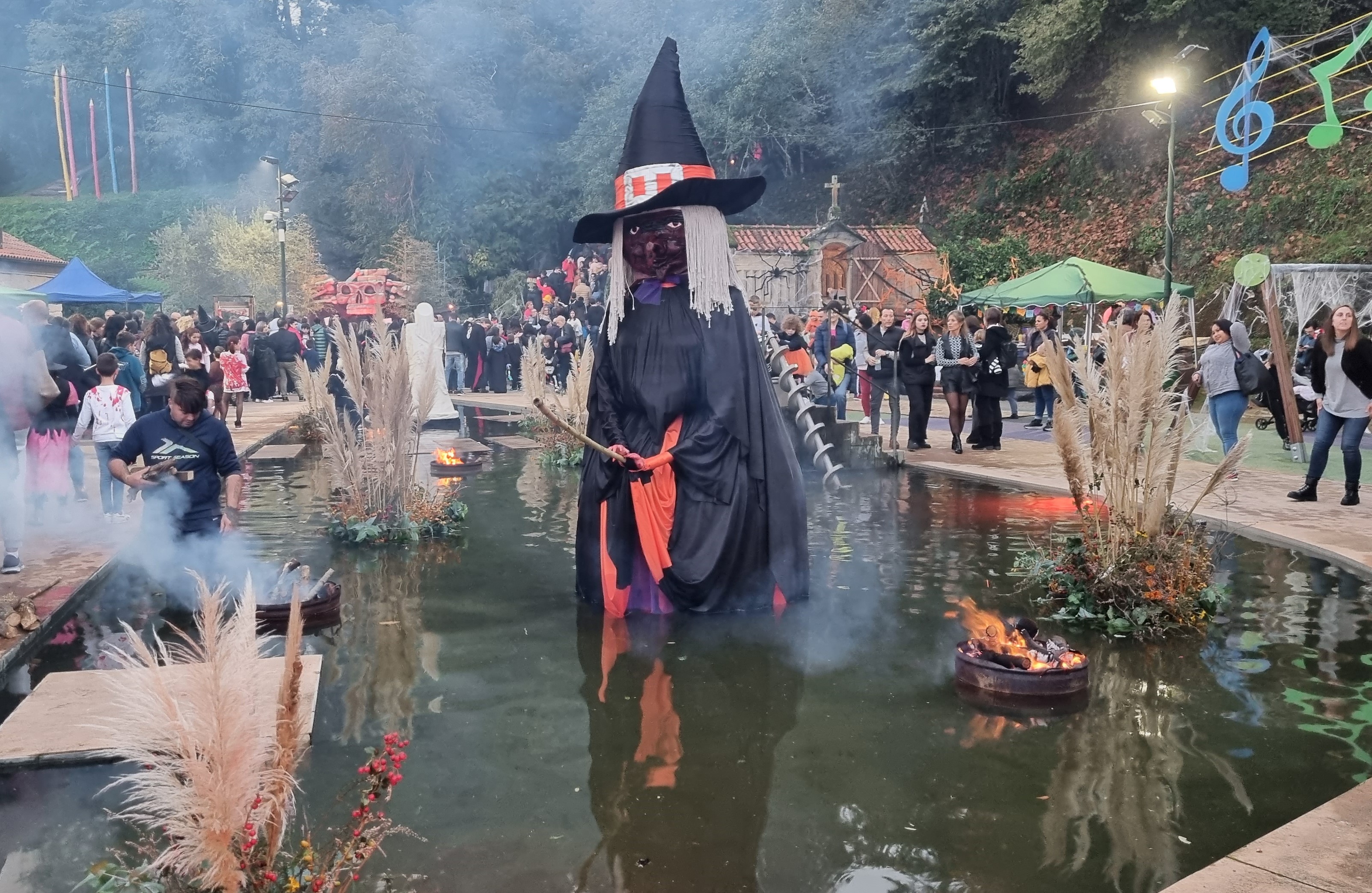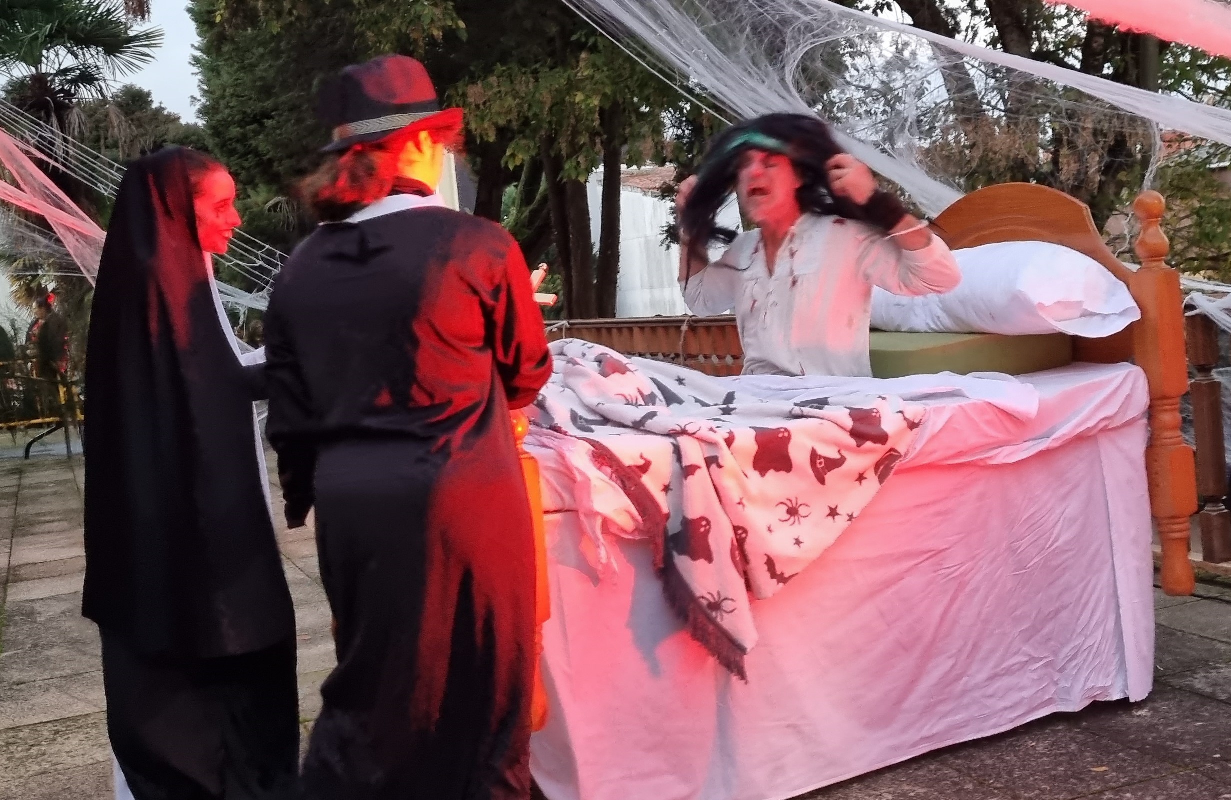 Recibidos por un grupo de los ruidosos y rítmicos tambores de "Maracumbé", se fueron ambientando con las figuras que les esperaban en la entrada y con la visión de a casa principal iluminada y adornada para la ocasión y con verdadera paciencia fueron formando las espesas colas para subir a las distintas rutas establecidas con diverso motivo a cuál más espeluznane que hacía gritar de terror a algunas personas siendo percibidos los chillidos por quienes aguardaban en la explanada principal del recinto.