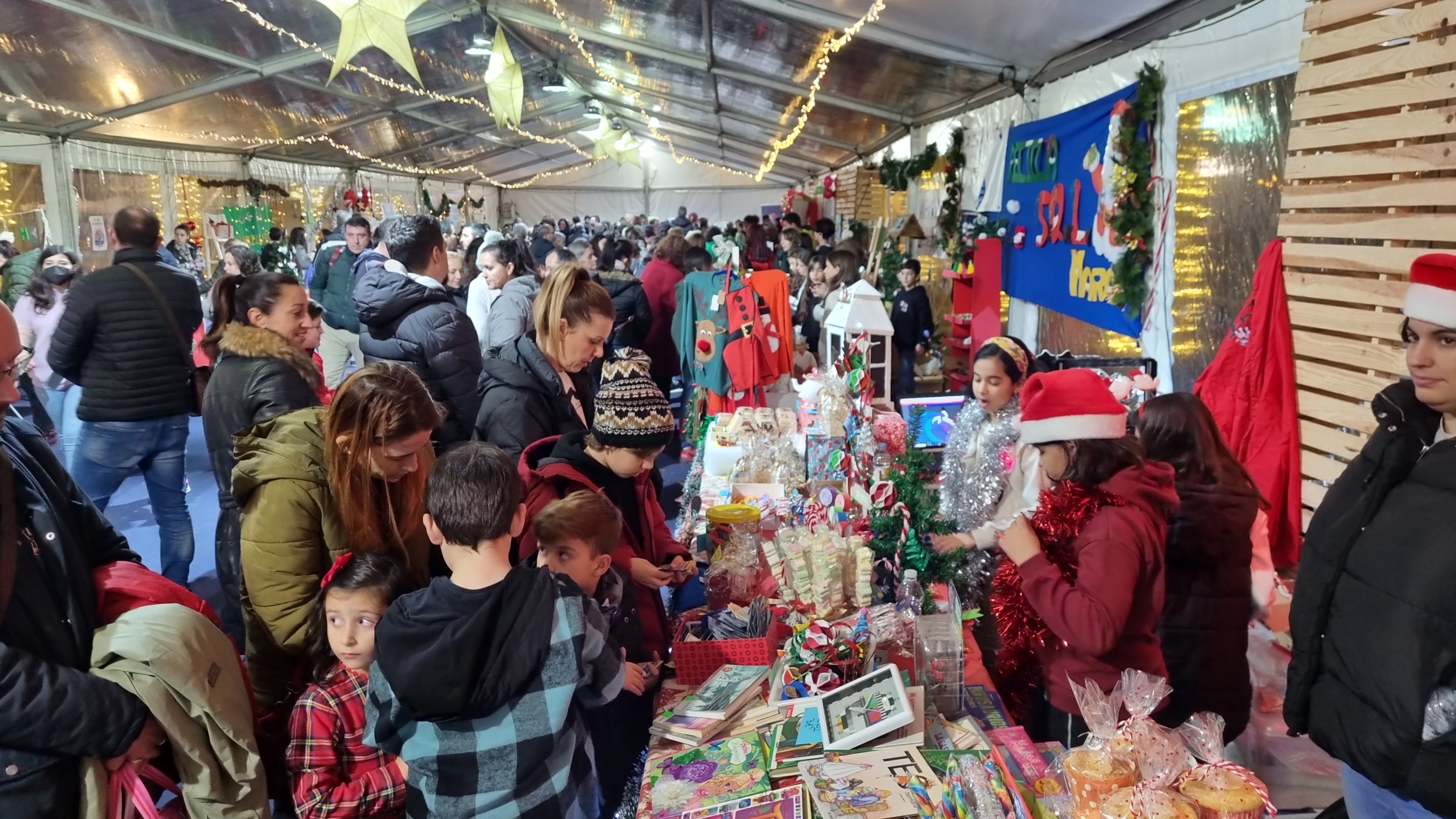 La carpa instalada en la alameda que acogerá los momentos más densos de la programación navideña, tuvo ayer una especial incidencia ambiental porque se celebró en ella el tradicional mercadillo de las ANPAs de los distintos centros educativos de la localidad con ofertas de numerosos artículos relacionados con el mundo escolar y “lambetadas” que cada puesto ofrecía a los numerosos visitantes que llenaron el recinto durante varias horas.