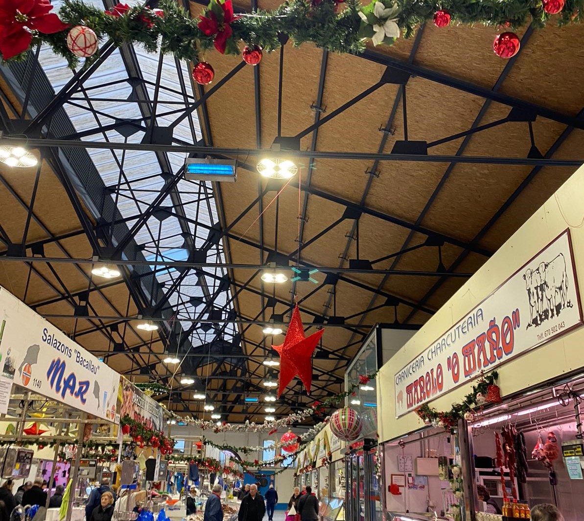 Los comerciantes de a plaza han decorado los puestos de sus asociados y el conjunto de la edificación para crear un ambiente especial durante esta época navideña e indican en el mimo comunicado, “Queremos agradecer a colaboración que nos brindou o Concello de Marín no tocante á decoración feita, e á Xunta de Galicia para poder poñer en marcha a campaña de nadal”.