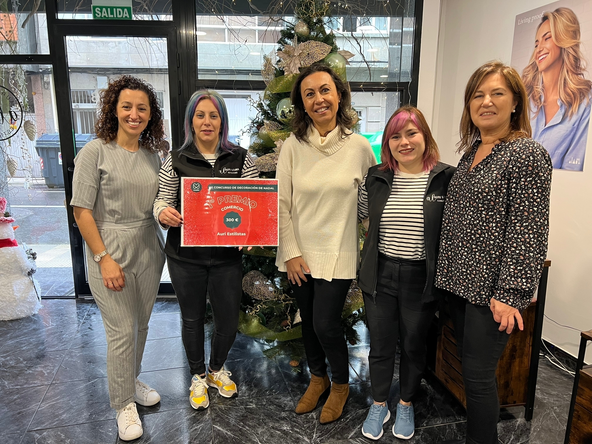 La alcaldesa María Ramallo acompañada de las concejalas Marián Sanmartín y Cristina Acuña procedió a la entrega de los premios en sus distintas categorías de decoración navideña visitando en algunos casos las instalaciones premiadas o entregando los premios en el propio concello.