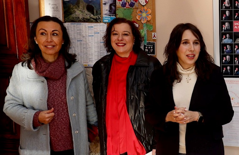 La Conselleira flanqueada por la alcaldesa y la responsable del CIM de Marín