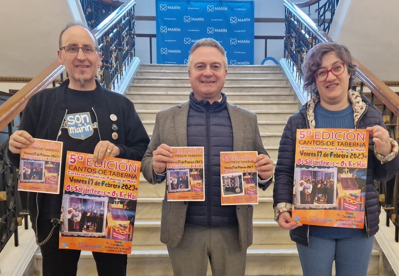 El intenso programa de Entroido se inicia hoy en Marín con el aperitivo de los Cantos de Taberna que organiza el animoso grupo “Os Saljariteiros” que alternarán con otra agrupación invitada las visitas a los distinto locales designados previamente