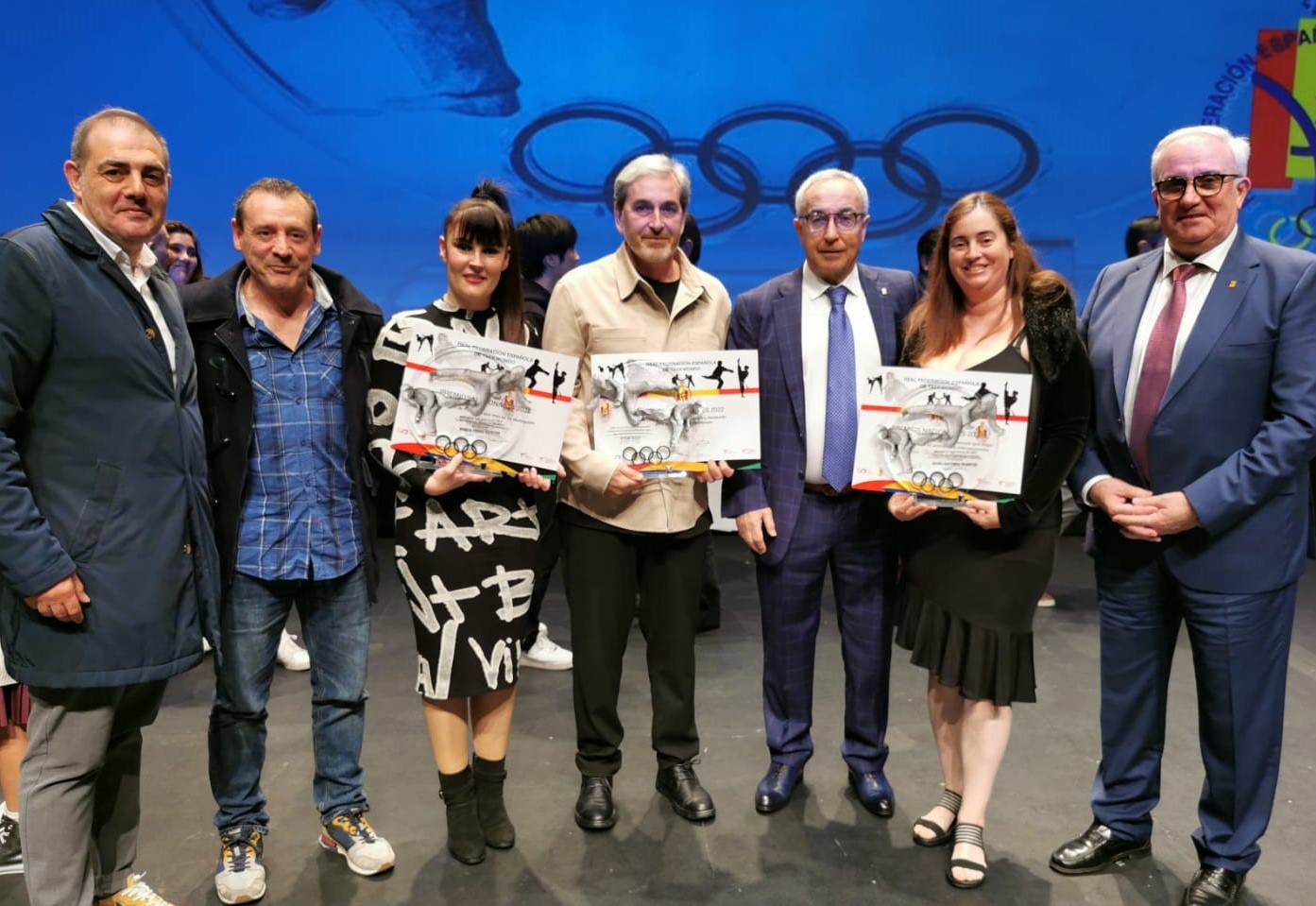 Ángel Torres entre los otros premiados yel presidente del COE Alejandro Blanco
