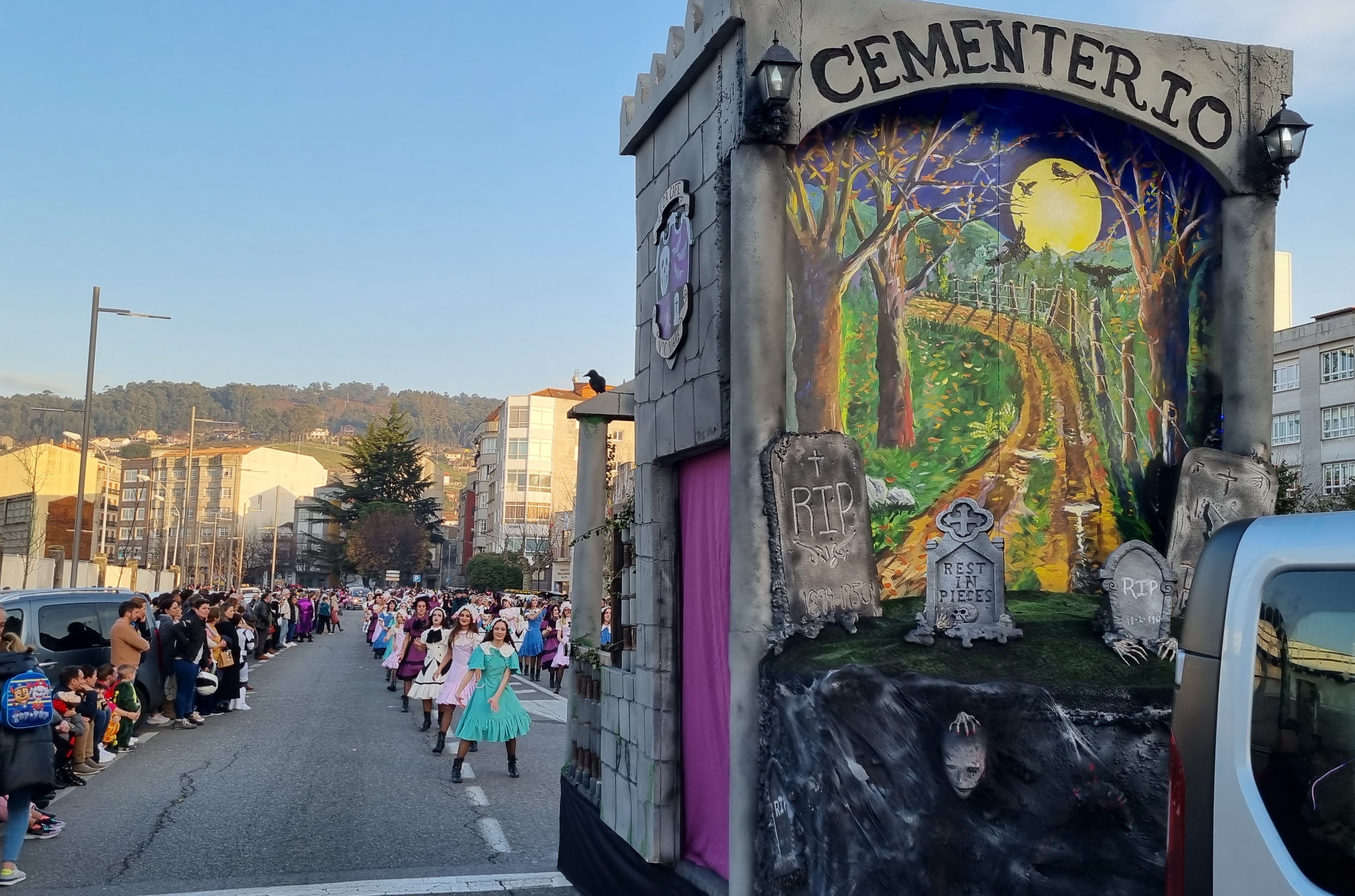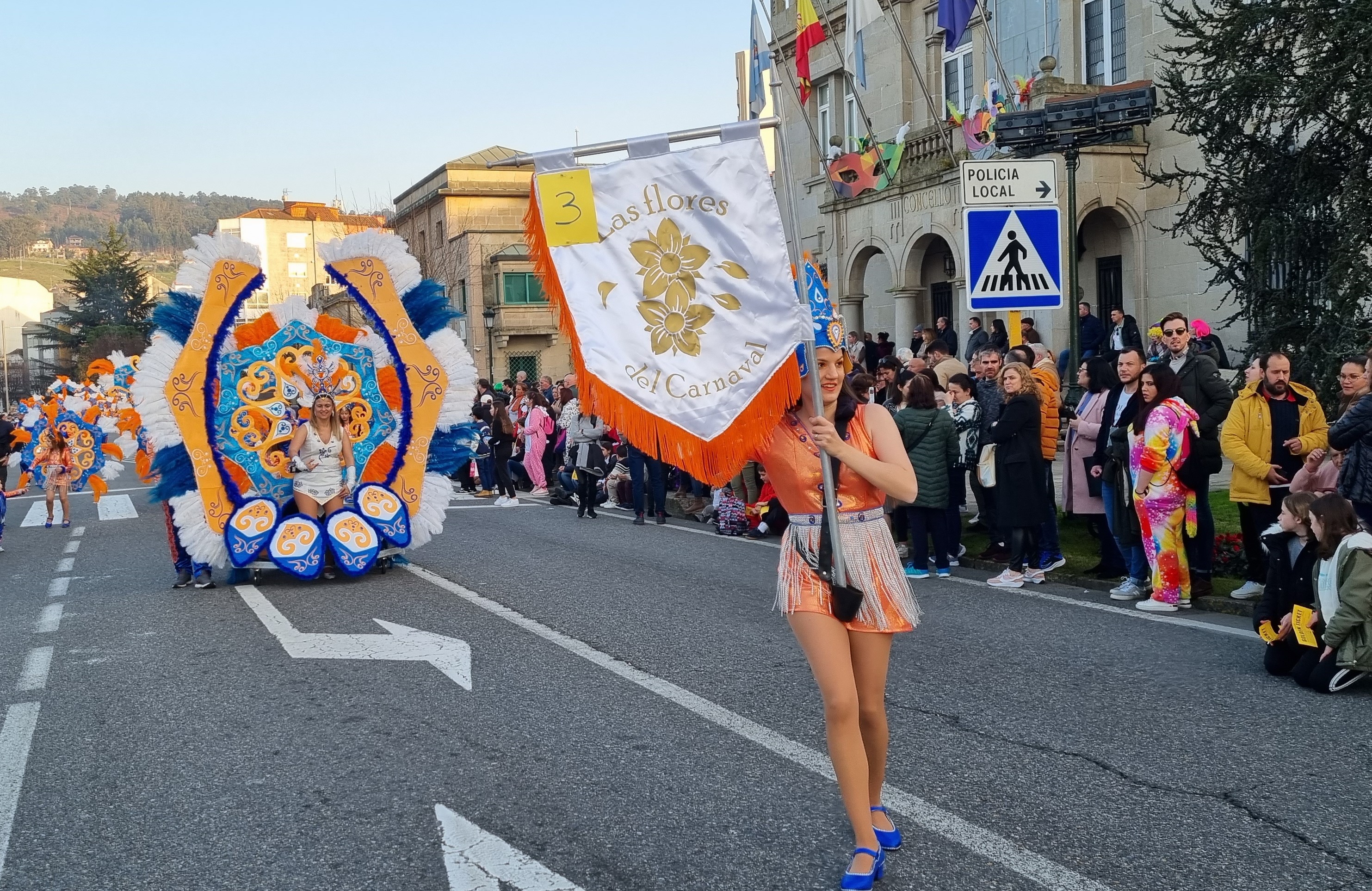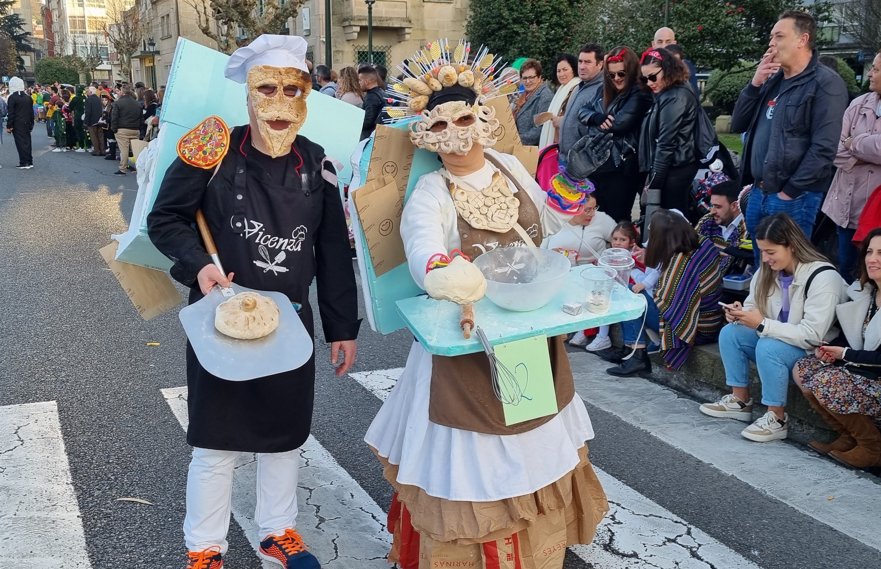 Desde su misma salida de Cantodarea, el desfile de carnaval celebrado esta tarde en Marín fue presenciado por miles de personas a ambos lados del itinerario que permanecieron las más de dos horas que duró el paso de las comparsas y los disfraces que este año, en lo que se refiere a individuales y parejas, han sido bastantes menos que en ocasiones anteriores