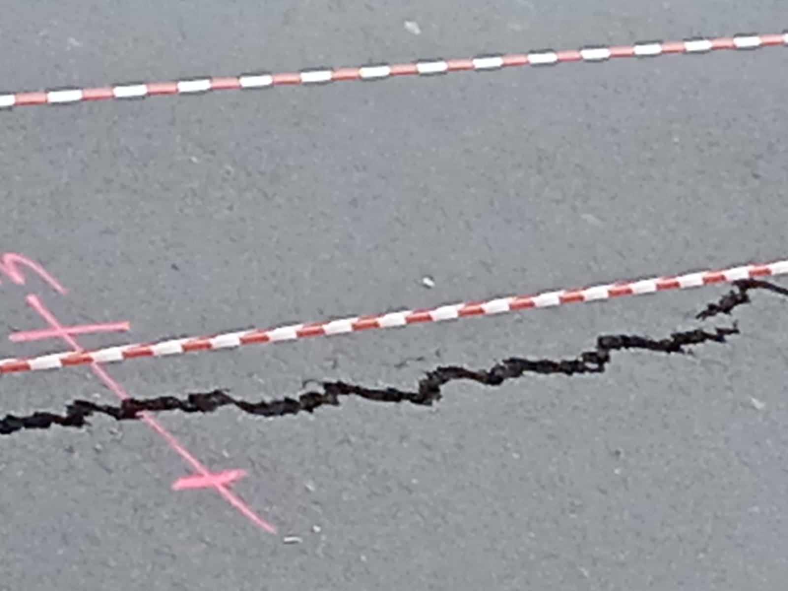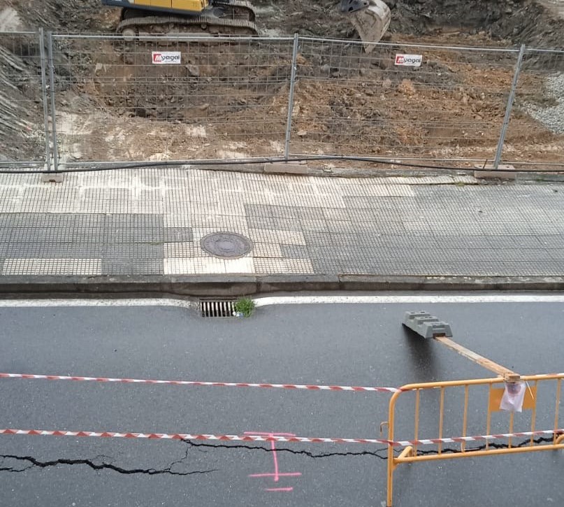 Así, uno de los residentes en el lugar nos remite estas fotografías en las que se ve claramente que, a causas de las obras de excavación que hace la empresa en donde pronto se instalará el nuevo Mercadona, se ha “bajado” la acera inmediata que limita con dicho movimiento de tierras y, en el centro de la calzada se han abierto profundas grietas que hacen temer lo peor o, cuando menos, representan un claro peligro para la circulación de vehículos por esa carretera que comunica el centro urbano con A Laxe.