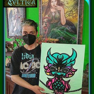 Licia, alumna aventajada del centro cultural Céltica con una de sus obras