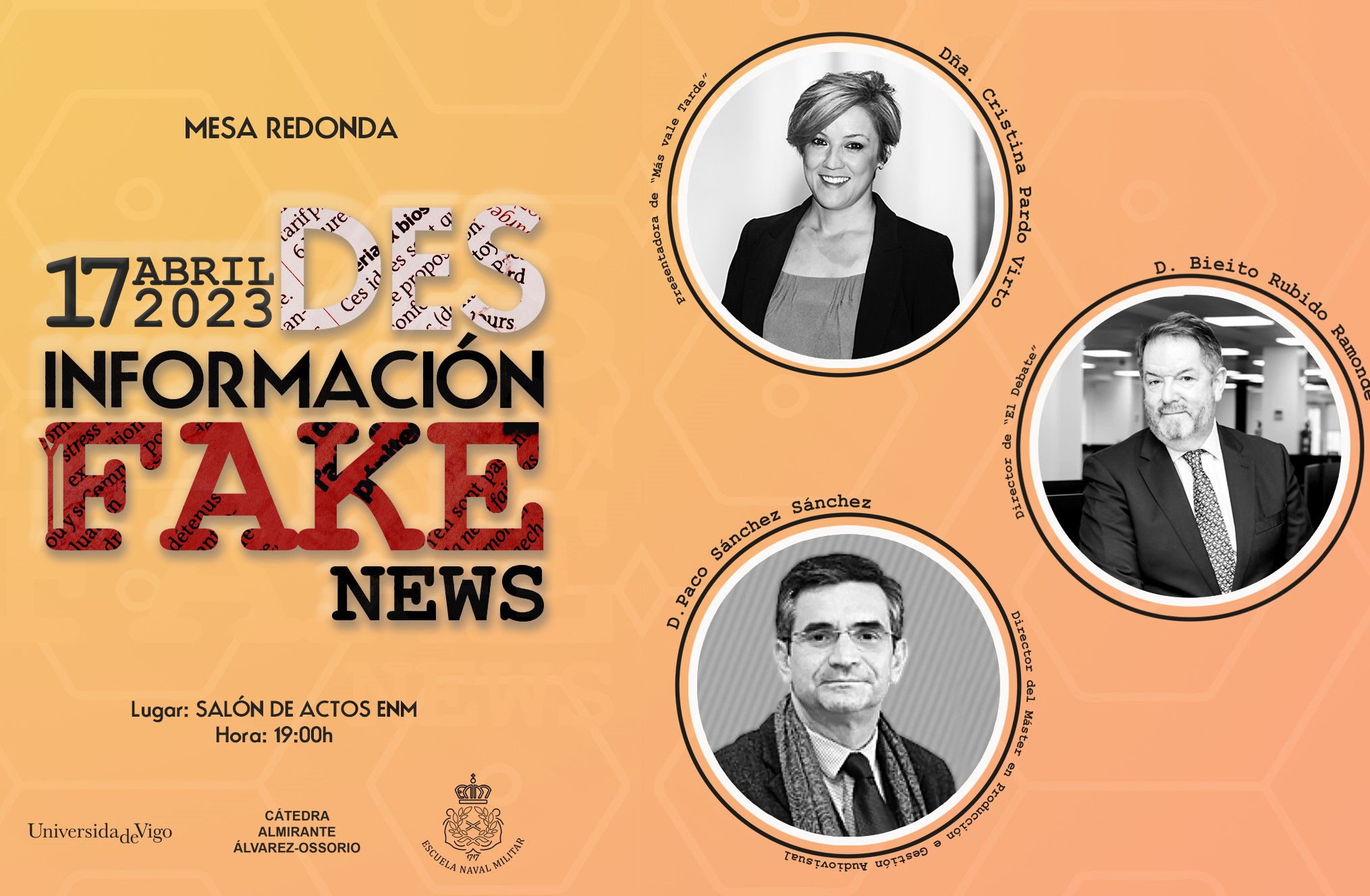 El salón de actos de la Escuela Naval Militar acogerá el próximo lunes día 17 a partir de las siete de la tarde la celebración de una mesa redonda sobre el tema “Desinformación” que contará con la presencia y participación de tres periodistas de gran peso en la actualidad informativa nacional como son Cristina Pardo, Paco Sánchez y Bieito Rubido los cuales tratarán desde sus puntos de visa el problema de las denominadas “Fake News” tan de moda especialmente en las redes pero también en publicaciones más o menos reconocidas que cuentan con su ámbito informativo, noticias falsas que pueden hacer mucho daño a quien sufre sus circunstancias.