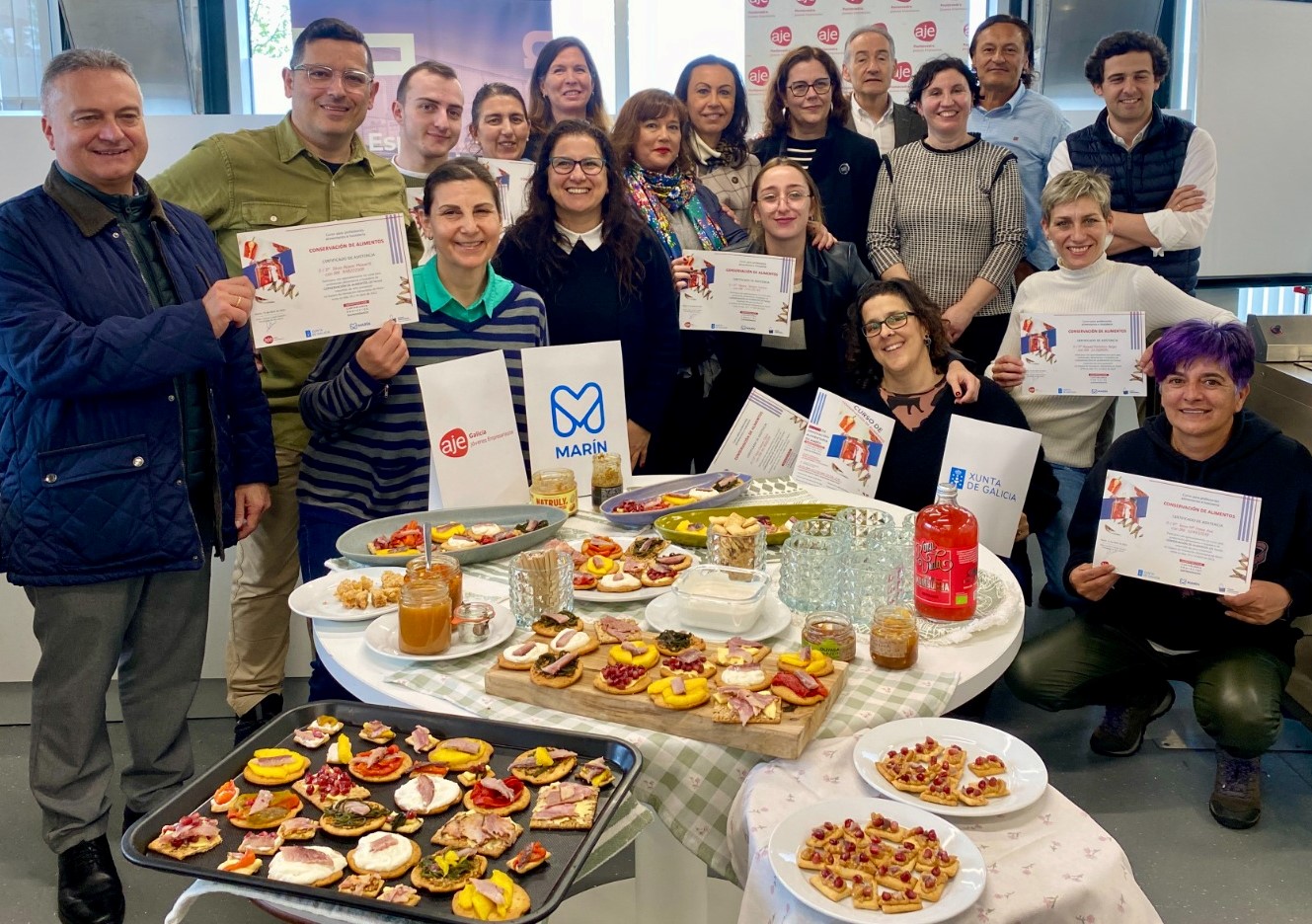 Finalizado el curso de conservación de alimentos que se llevó a cabo en el Espacio de Emprendimiento del Parque Azul, ayer se procedió a la clausura del mismo con presencia de las personas participantes, y de autoridades entre las que se encontraban la alcaldesa de Marín María Ramallo y el presidente del Puerto, José Benito Suárez.