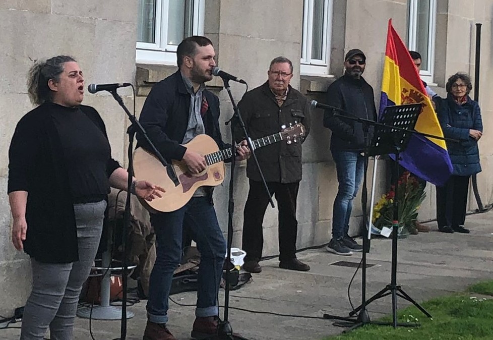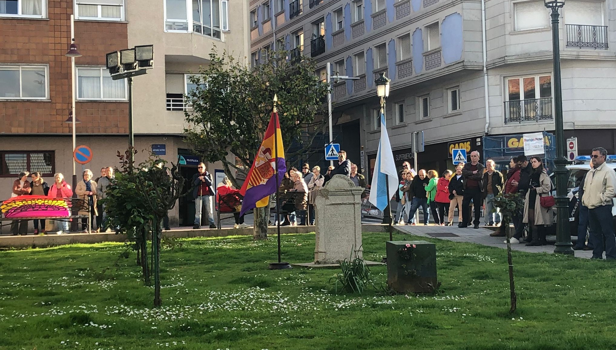 Tal como estaba anunciado, ayer, ante la Pedra da Liberdade, se reunieron las personas simpatizantes de la República convocados por la asociación marinense por la Memoria Histórica que preside Queta Molas.