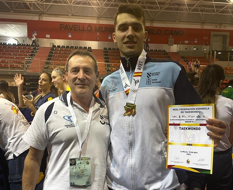 Sergio con su entrenador luciendo medalla de oro