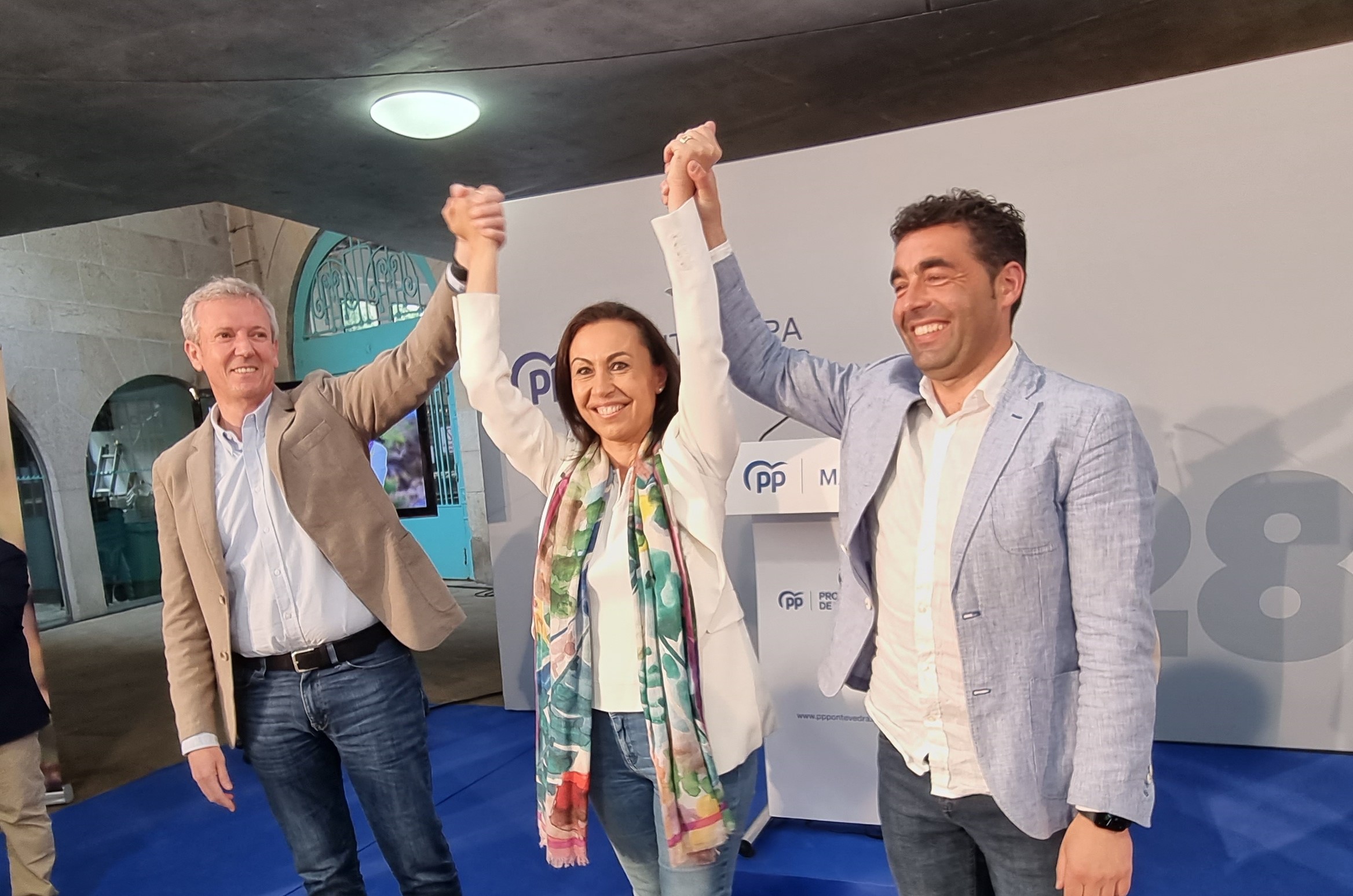 María Ramallo actual alcaldesa de Marín y candidata a una cuarta reelección tras sus tres anteriores mayorías absolutas, se debió sentir muy respaldada ayer ante el abarrote en el multiusos que produjo la convocatoria al mitin principal con presencia de Alfonso Rueda, actual presidente de la Xunta y del PP gallego.