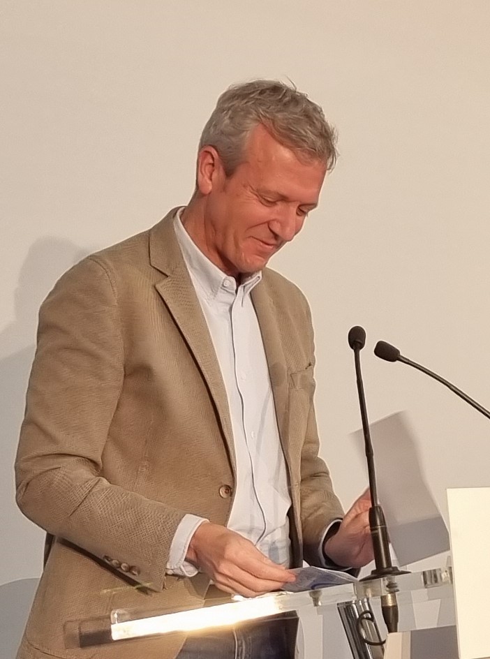 El discurso de Ramallo se centró después en la persona del presidente de la Xunta, Alfonso Rueda al que le mostró el contenido del programa del partido para el que aseguró, “necesito pasta”. Habló de la promesa cumplida del auditorio hecha tal día como ayer hace cuatro años por Feijóo, obra que está en construcción a pesar de las dificultades surgidas. Enumeró los proyectos de conseguir una unión de Marín con el mar, de conseguir un Marín mus saludable y ordenado con dotación de sendas, parques, remodelaciones como la de Seixo y la construcción del aparcamiento subterráneo todo con la decisión de hacer un pueblo más conectado entre sí que nunca, más sostenible y abierto al turismo y sobre todo, aportarle vida mediante apoyo a la cultura y a las tradiciones.