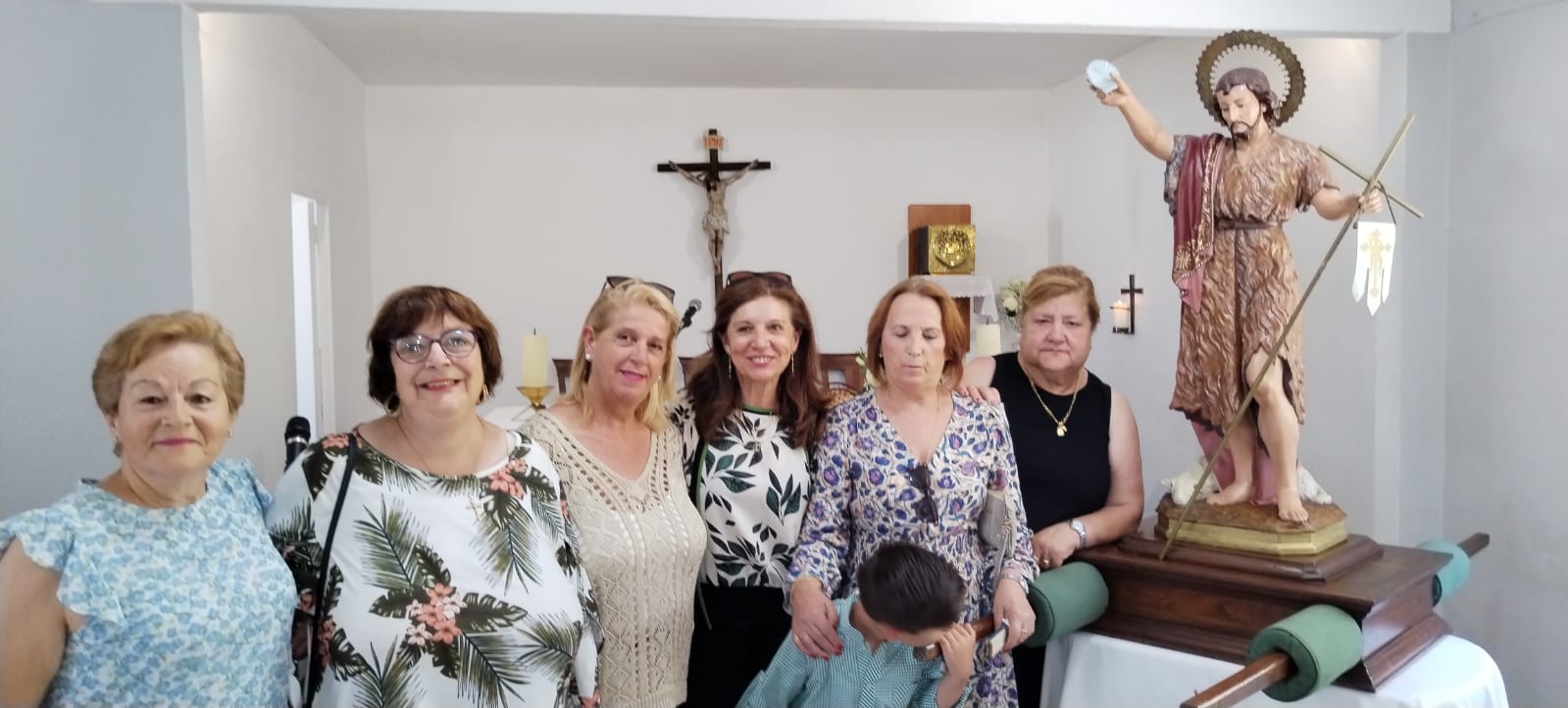 Vecinas de la barriada junto a la imagen de San Juan