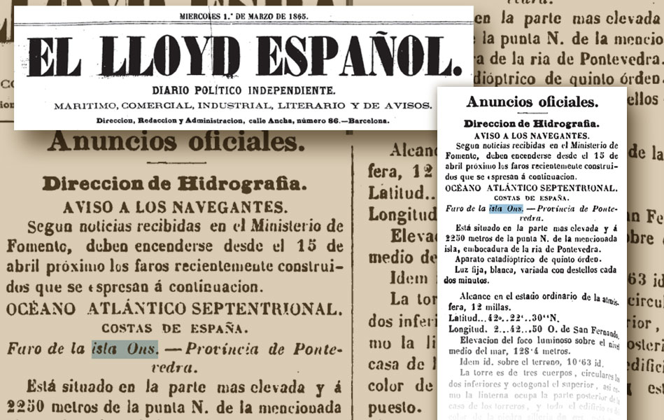 Nuestra Ría es segura y tranquila como lo han atestiguado en multitud de ocasiones los hombres de la mar. La Armada encontró este refugio tan especial y no dudó en colocar el Poligono de Tiro Janer, primero, y la Escuela Naval desde 1943, despuès, en parte por ese mismo motivo. Pero siempre hay peligros sobre todo nocturnos o de escasa visibilidad por motivos naturales que han provocado problemas e incluso naufragios. La señalización de los faros ha ido mejorando sustancialmente con los años y en Carriola, nuestro colaborador “Mariñeiro”, aprovechando la estupenda fuente informativa de la Autoridad Portuaria, nos contará la historia de los puntos de luz que defienden la seguridad de los barcos que por aquí navegan. Y empieza hoy con el Faro de Ons que, desde 1861 funciona en la mítica isla de la entrada en la ría marinense.
