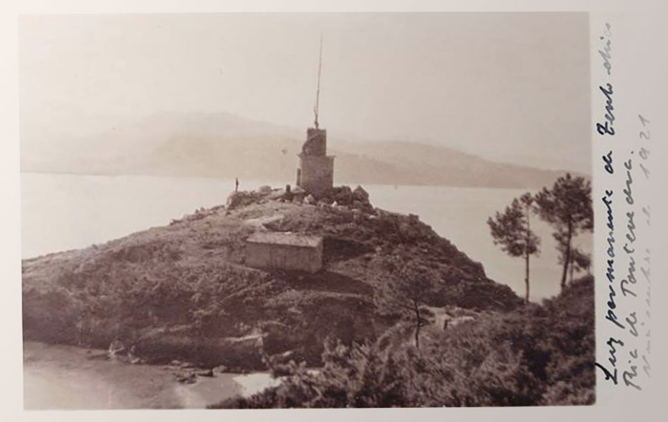 En el fondo de la Ría, en la pequeña península de Tenlo Chico, al sur de la isla de Tambo, se levanta en febrero del año 1922 la torre “Faro de Tenlo Chico”.
