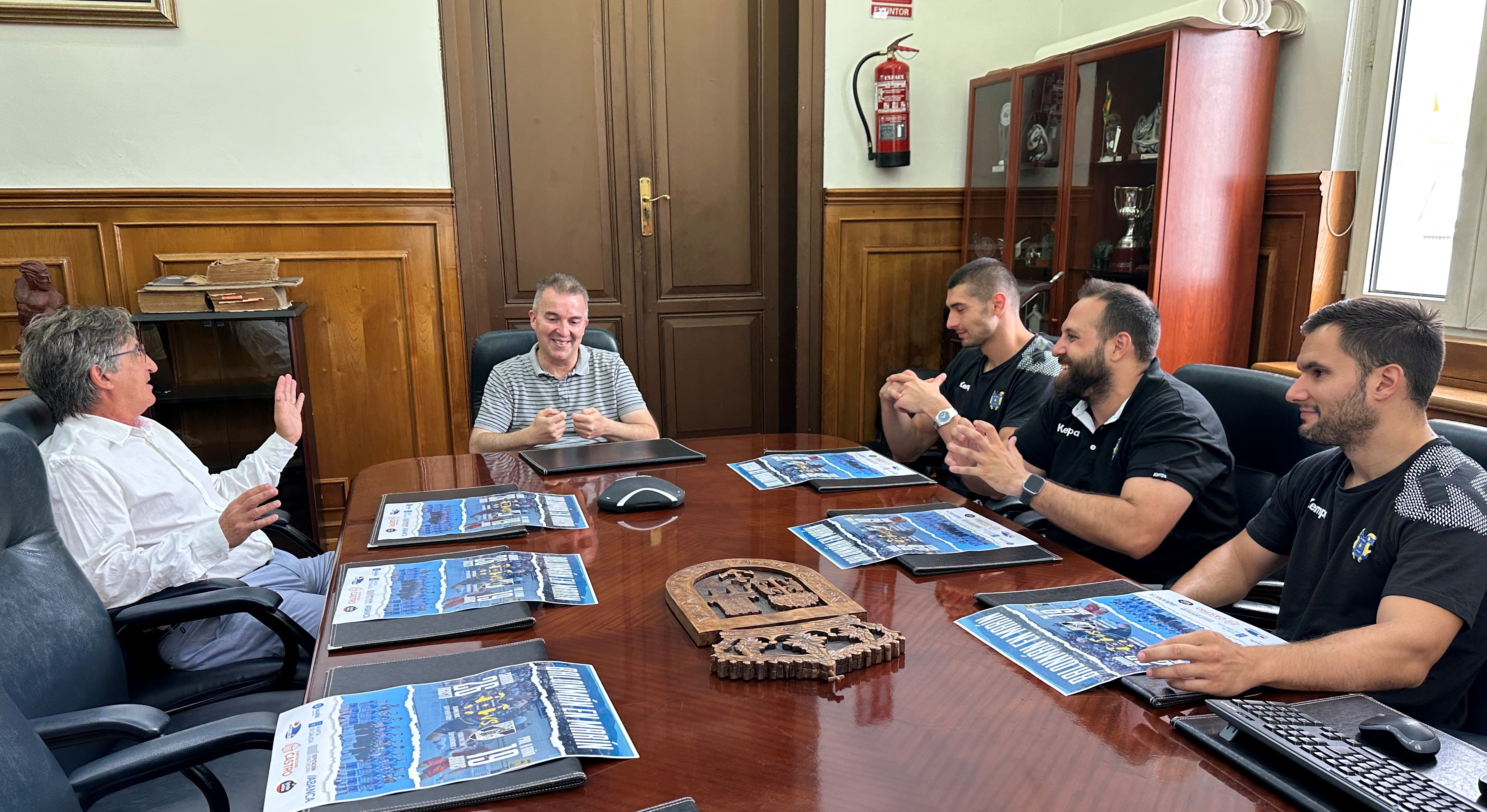 El concello de Marín fue el lugar de la presentación del encuentro con presencia del concejal de deportes Antonio Traba, el presidente del club cangués, Alberto González; el entrenador Nacho Moyano y los jugadores Moisés Simes y Rares Fodoream.