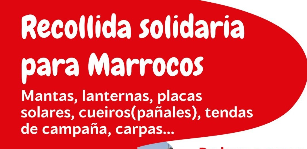 Desde o Concello. Maríán Sanmartín fai un chamamento para amosar apoio ao pobo marroquí nos graves momentos que están pasando a concecuencia do terremoto sufrido hai uns días. A concelleira explicou que a Asociación de Mulleres Corazón Aberto e o CEIP da Laxe serán os que coordinen esta recollida de productos que se demandan desde o país afectado polo desastre natural.
