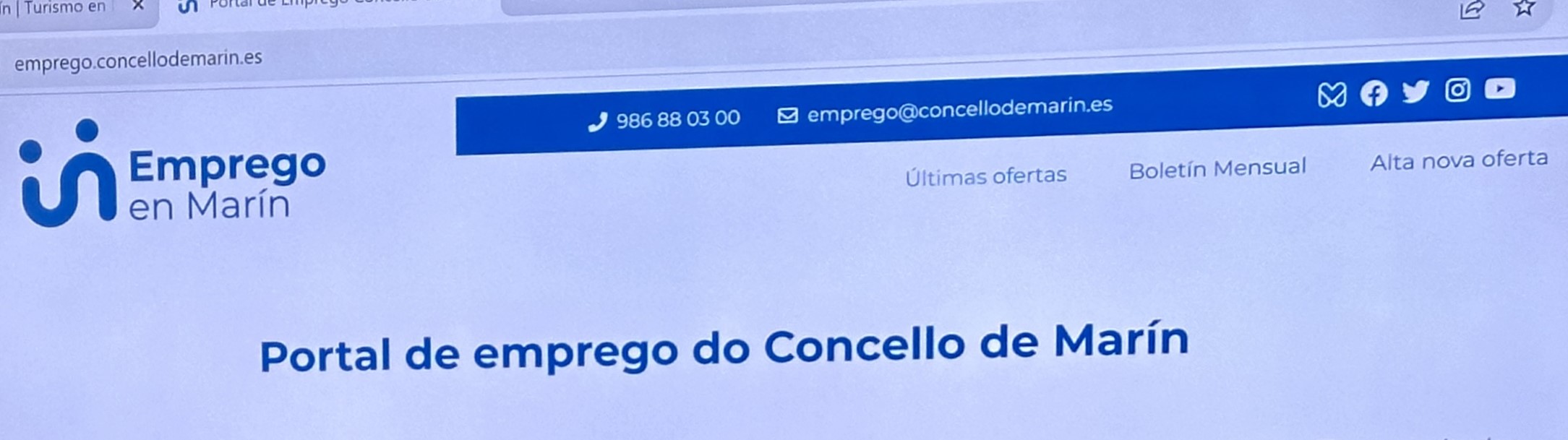 Acudiendo a la página emprego@concellodemarin.es , cualquier empresa que precise trabajadores puede hacer su oferta utilizando el formulario que se facilita en la misma así como, a la recíproca, cualquier trabajador o trabajadora que busque empleo puede recurrir a esa dirección y encontrará tanto ofertas que pueda haber en las empresas como los formularios para tomar contacto con las mismas,lo que serà, sin duda de una gran ayuda para ambas partes a la hora de resolver el problema de la oferta o la demanda de empleo o por lo menos, facilitar la solución de las carencias que pueda haber por ambas pàrtes.