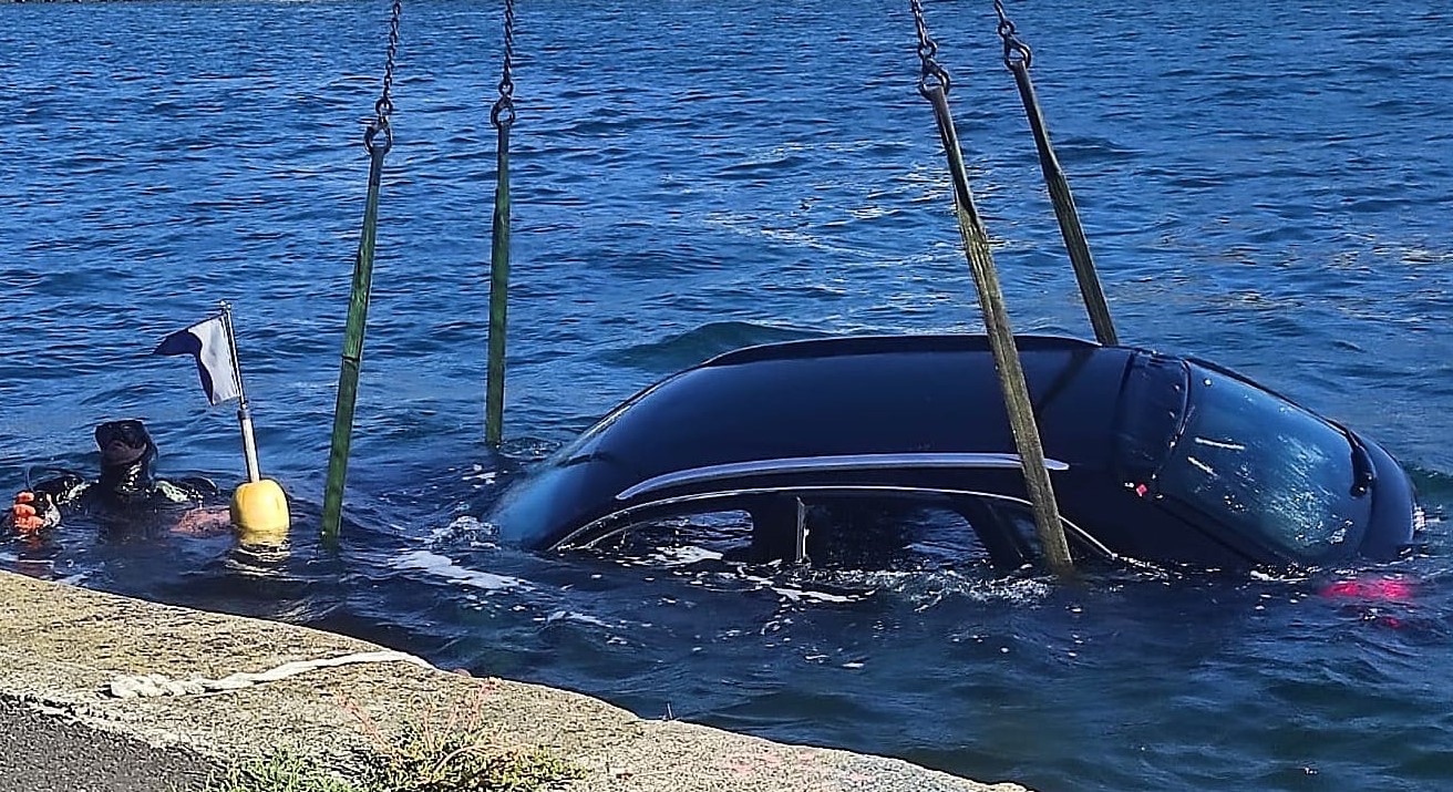 Esta tarde los buzos se encargaron de la sujeción del vehículo que fue extraído por una máquina y devuelto al muelle a donde llega seguramente muy deteriorado por los efectos negativos que, principalmente su su motor y sistemas electrónicos produjo el agua salada del mar.