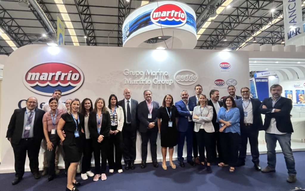 Marfrío estuvo presente en la edición de este año de Conxemar con un impresionante stand propio de más de 100 metros cuadrados. Ubicada en el Puerto de Marín, es una potencia mundial en el sector de productos congelados del mar y de hecho tiene sedes, además de en España, en Portugal, Perú y Namibia, todas ellas representadas en este expositor al que cualquier potencial cliente puede acercarse en estos días para conocer la amplia gama de exquisiteces que proceden de los barcos de pesca que surcan los mares de medio mundo.