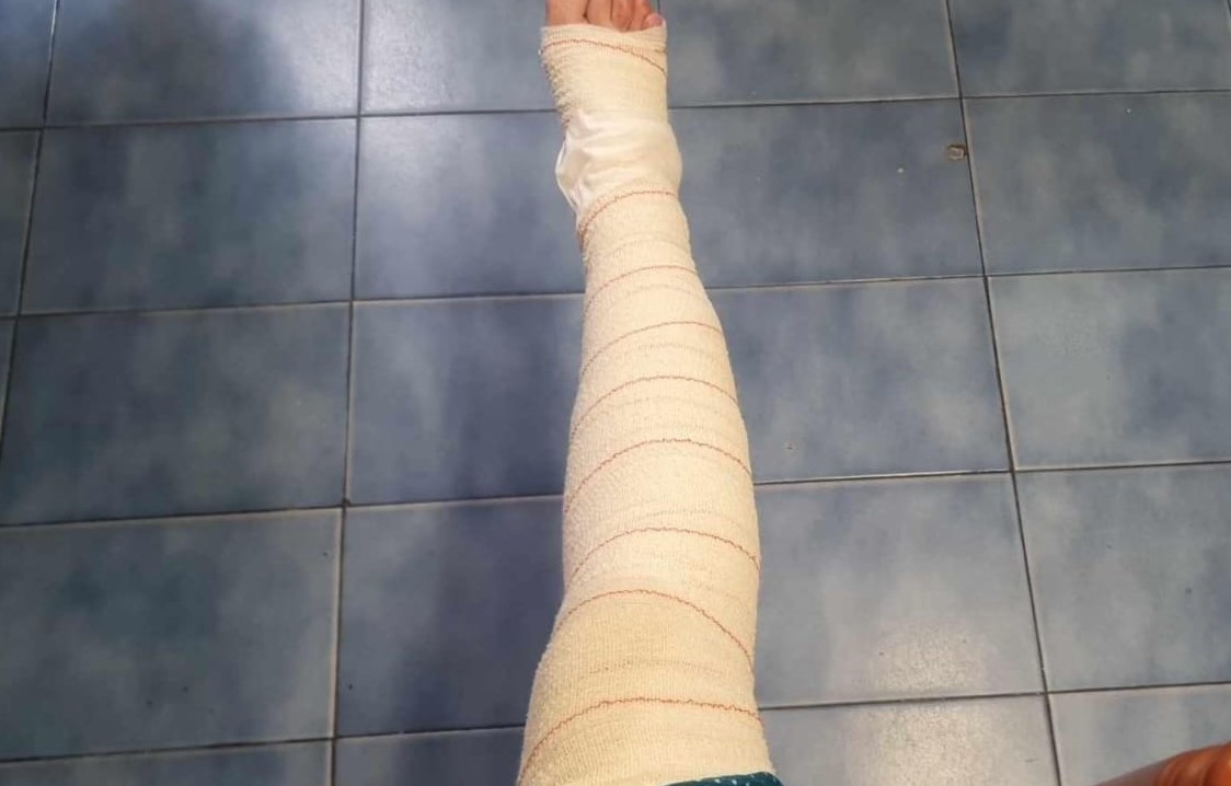 Según nos relata ella misma, todo ocurrió en el portal del edificio contiguo al establecimiento cuando su pareja iba a entrar al mismo y dos jóvenes se abalanzaron sobre él por lo que ella, que se encontraba aparcando el coche, según asegura, intentó ayudarlo gritando y, uno de los supuestos agresores, se quedó fuera e impidió su entrada en el portal empujándola por lo que se rompieron los cristales del portal. “Me empujó y la pierna se me coló hacia por eso los cortes en la pierna”- aclara, a la vez que indica que lo ocurrido fue en el portal contiguo y no en el del establecimiento.