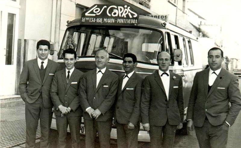 Y cuando uno se encuentra, como es el caso, fotografía como estas, una de ellas de de “Los Capris” con el Maestro Xiraldo a la derecha, hecho un brazo de mar, y su minibús con elegante cartel en su frente, y la otra de una verbena en San Pedro el 21 de junio de 1954 con conocidos músicos, entre otros los hermanos "Ferrolán" con una vocalista femenina, pionera en esta labor, le vienen los recuerdos de otras épocas en que las orquestas y los grupos no disponían de tantos complementos. Las había mejores y peores y todos sabíamos como sería la verbena de la noche con leer el nombre del grupo musical que la animaría. Estaban aquellas lujosas, enormes en todos los sentidos, como “Poceiro”, “Florida”. ”Chicos del Jazz”, “Sintonía de Vigo”, “Satélites de La Coruña”... que competían ente ellas en elegancia e interpretación musical sin nada “enlatado”, además de “animador” que cantaba con belleza, pasión y sobre todo garganta y oído. También había grupos y orquestas más humildes en su concepción que no en su ilusión, que con pocos efectivos en el palco y menos "números" en cada cuerda musical, transmitían igualmente la animación verbenera y siempre según las posibilidades económicas de la comisión organizadora de las fiestas.
