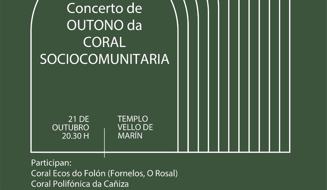Como cada año por estas fechas, la Coral Sociocomunitaria de Marín organiza el concierto de la época otoñal que esta tarde se celebrará en el antiguo templo a partir de las ocho y media de la tarde, un acto en el que la agrupación marinense compartirá escenario con “Ecos do Folón”, de Fornelos de Montes/O Rosal, y la polifónica de “A Cañiza”.