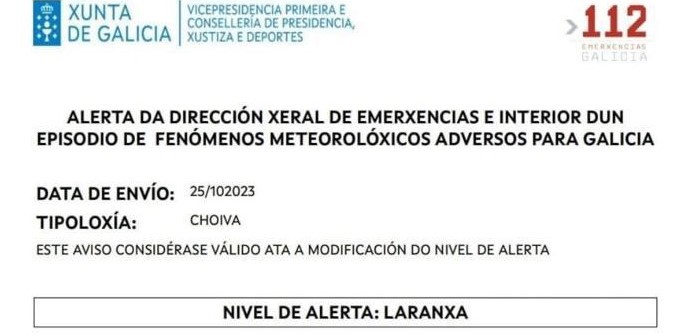 Es un aviso urgente que nos lega desde el servicio de meteorología de la Xunta de Galicia que reproducimos para el conocimiento de los vecinos de este entorno que deben tomar las precauciones necesarias para evitar, en lo posible, peores daños por estas incidencias.