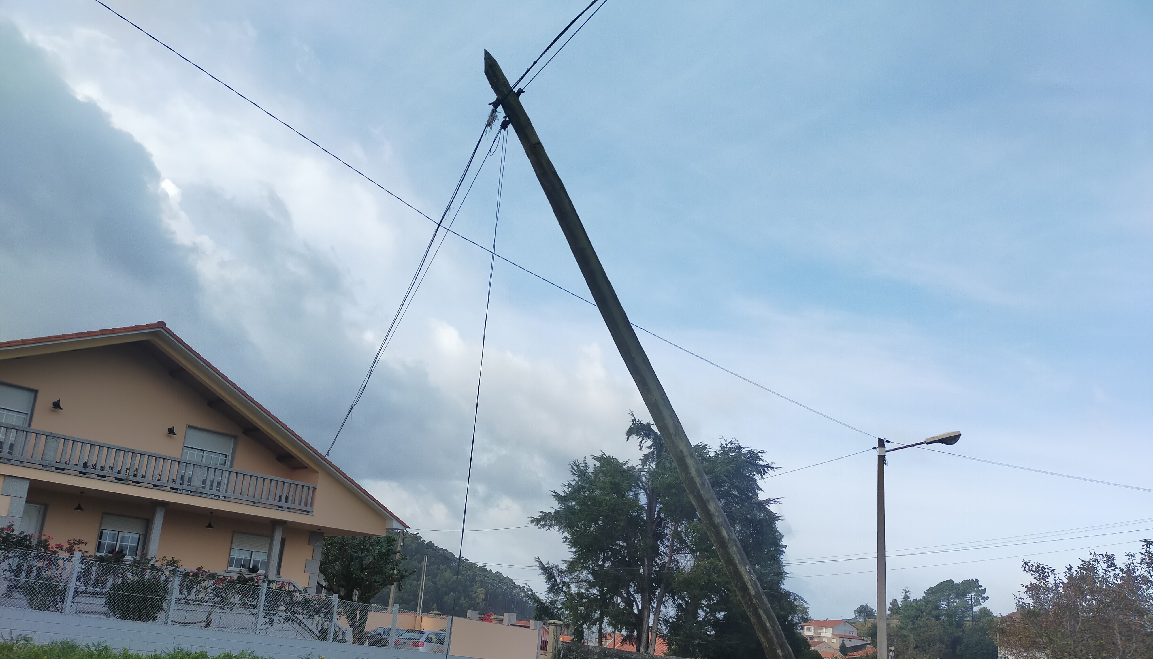 El pasado fin de semana los vecinos de Seixo alertaron de la situación peligrosa de un poste de comunicación en la Rúa Ángel Araújo y notificaron a la empresa responsable sobre el peligro que supone, pero no han obtenido ninguna respuesta hasta el momento