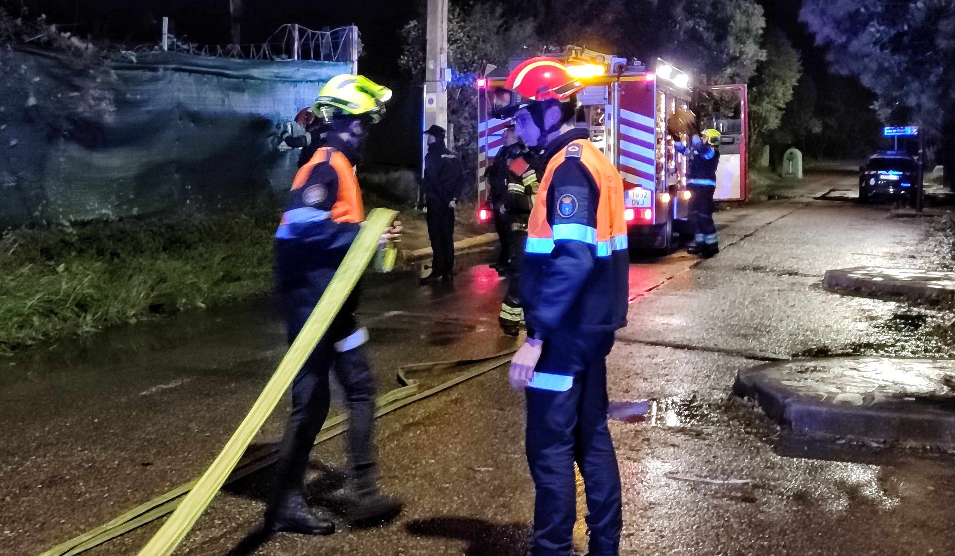 Pasadas las once y media de la noche los bomberos cruzaban Marin rumbo al Vial de Playas donde se había producido un fuego del que se percató un vecino que procedió minutos antes a llamar a la policía alertando del caso.