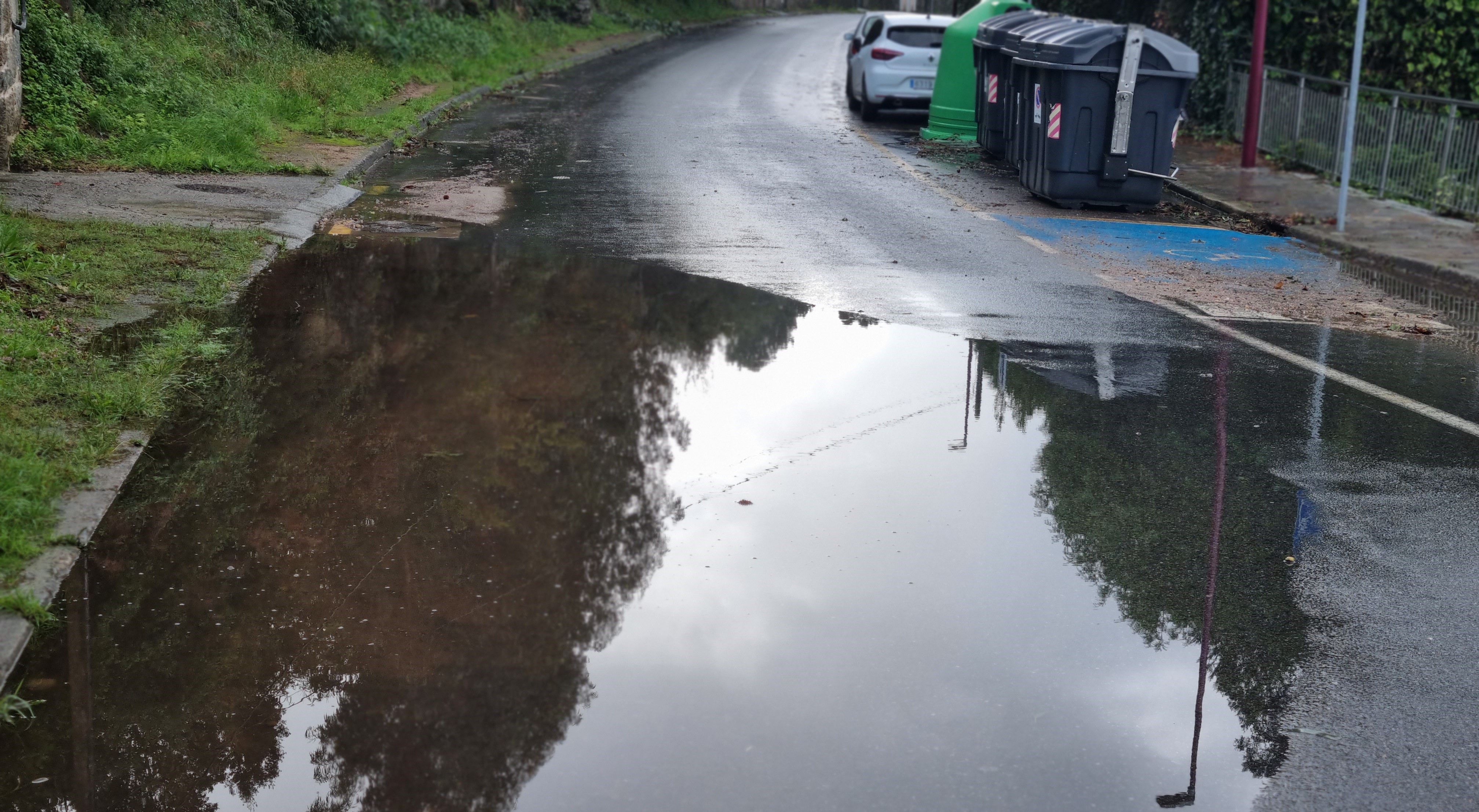 No es desdeñable tampoco el enorme charco que se formó en Aguete aunque solo con limpiar el desagüe sería suficiente para evitarlo, que provoca un “aquaplaning” de evidente peligro para ls vehículos y, por ende las personas que coincidan en el lugar.