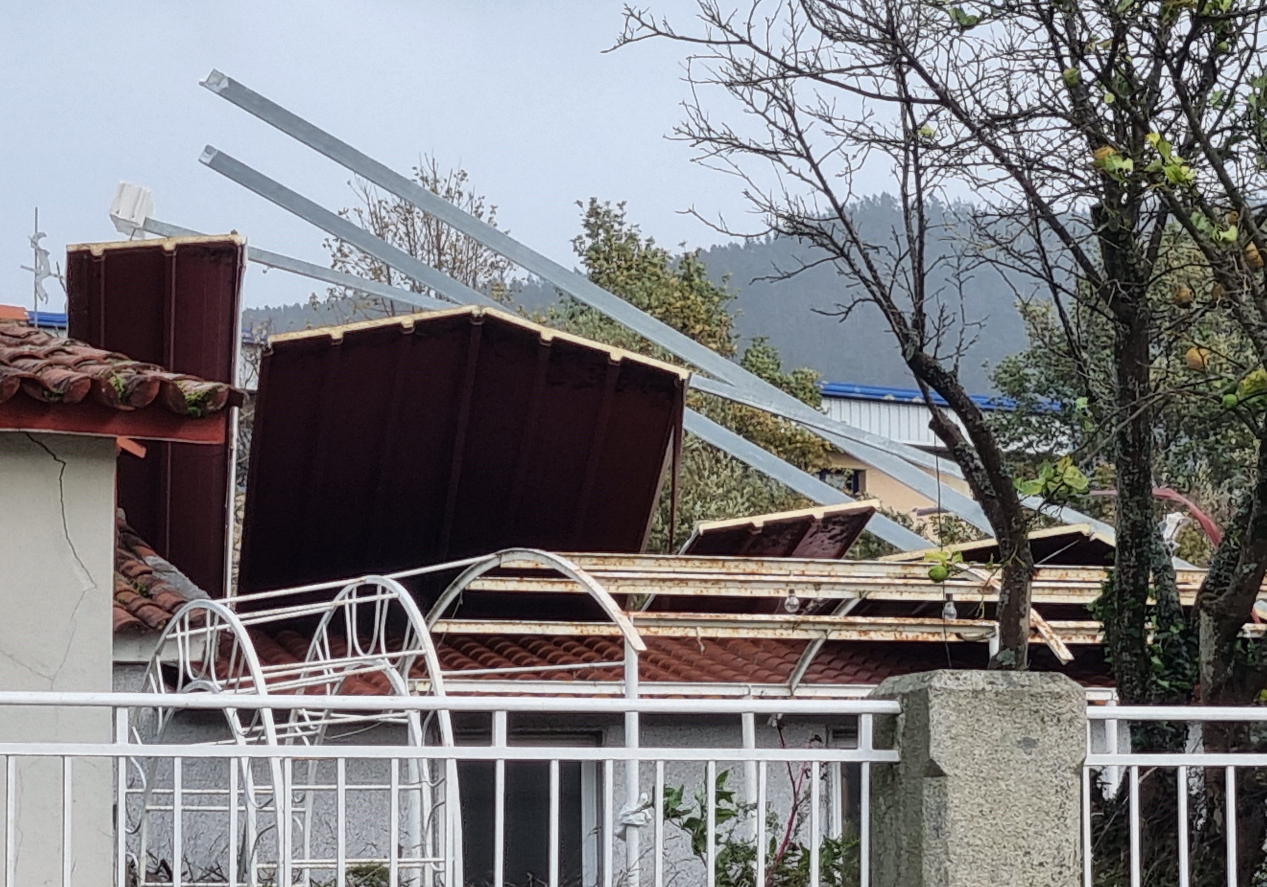 y el tejado que, en la misma zona se desprendió y chapas fueron a caer sobre una vivienda ubicada en las cercanías.