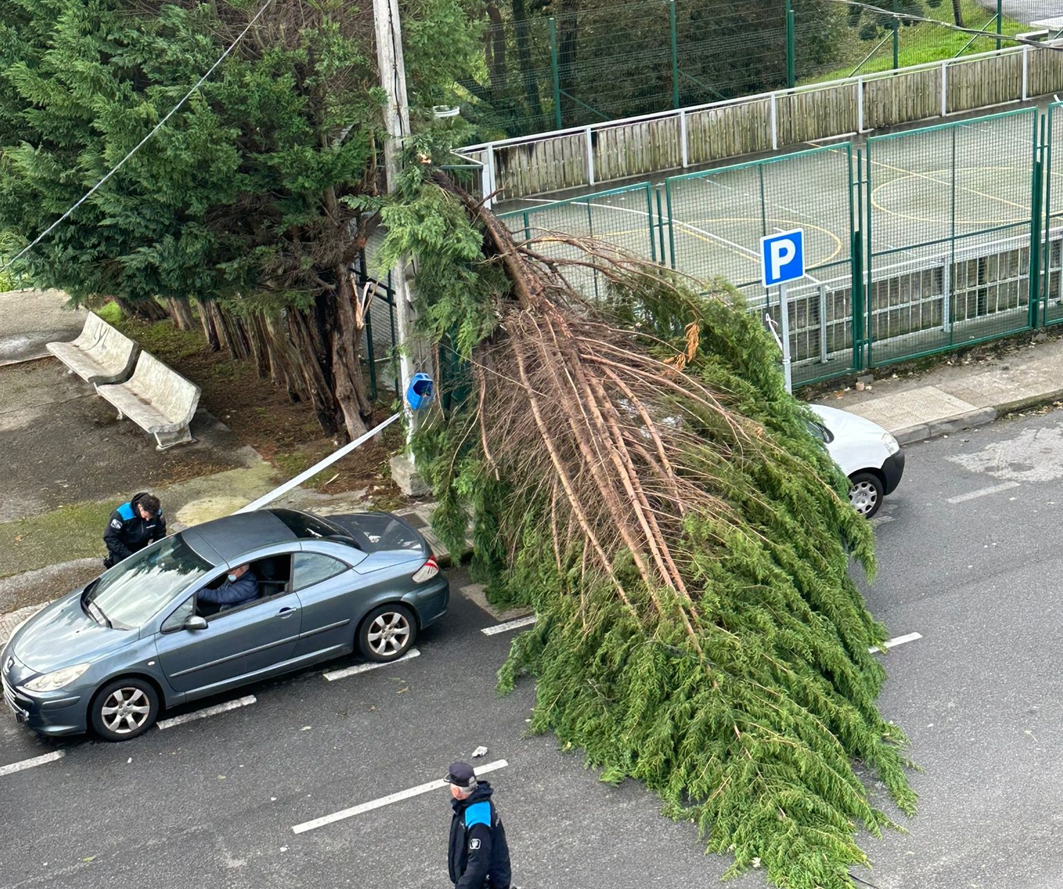 Como ejemplo tenemos el árbol que en San Pedro, al lado de la pista polideportiva al aire libre, cayó el pasado sábado sobe unos coches,