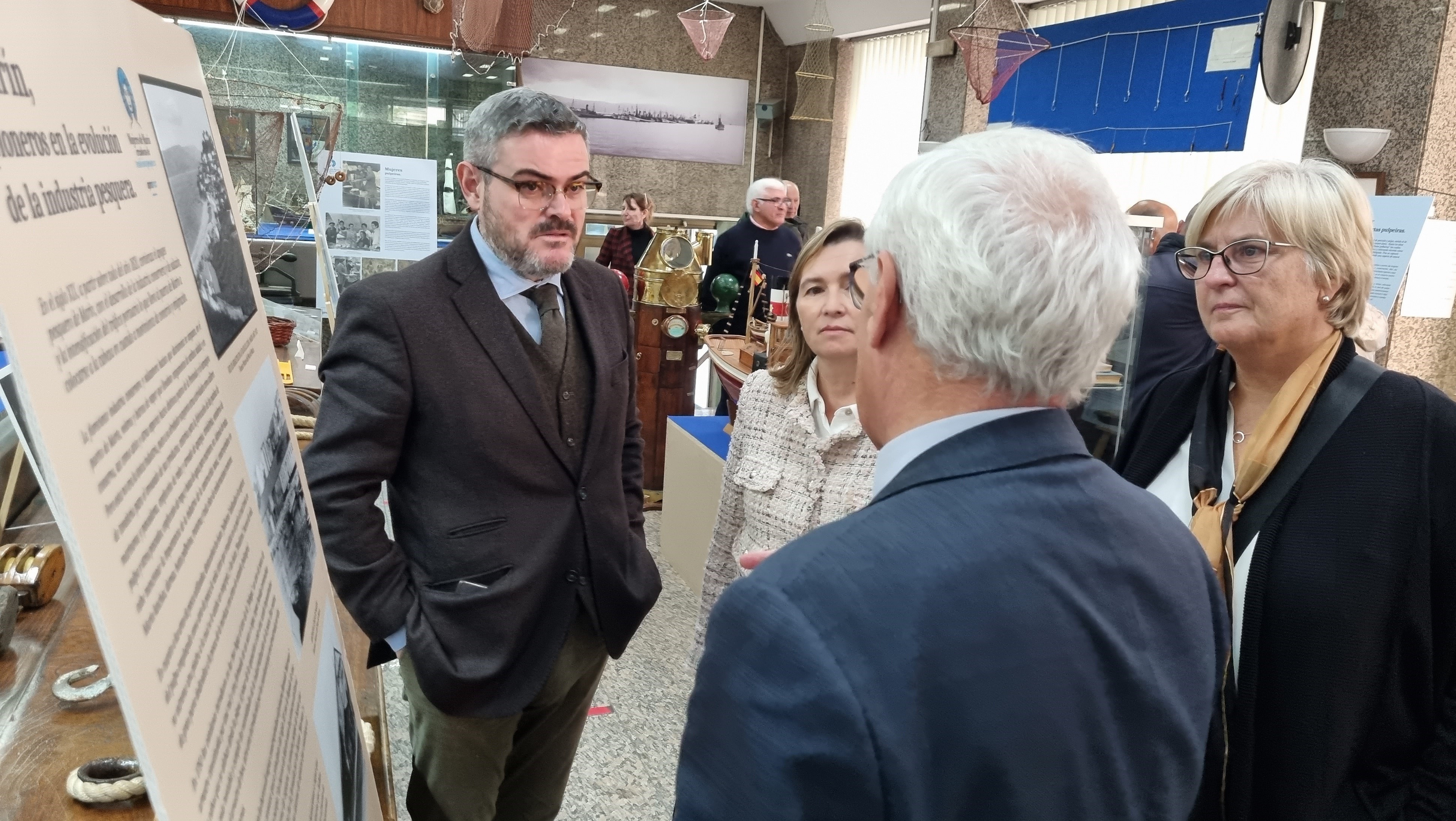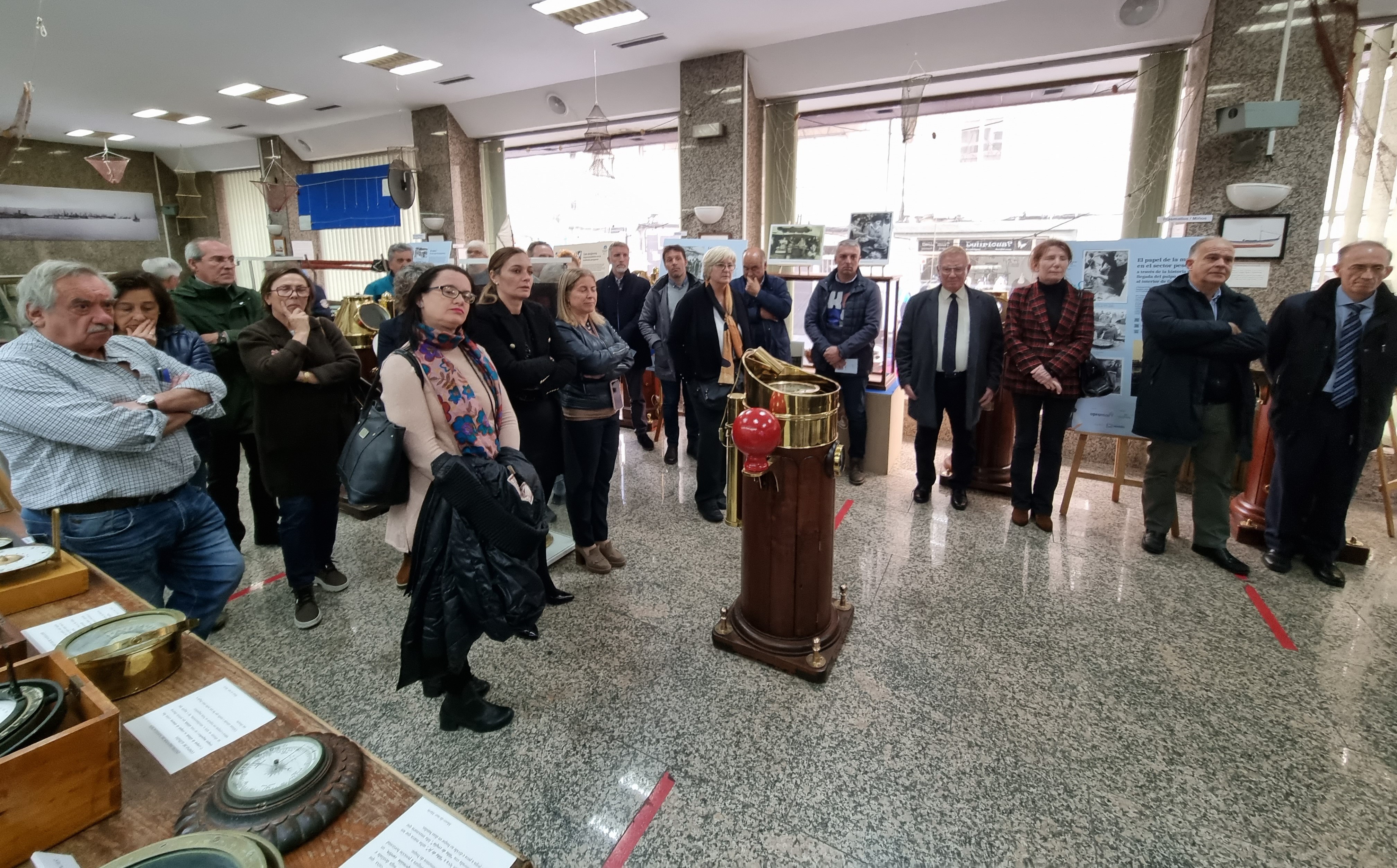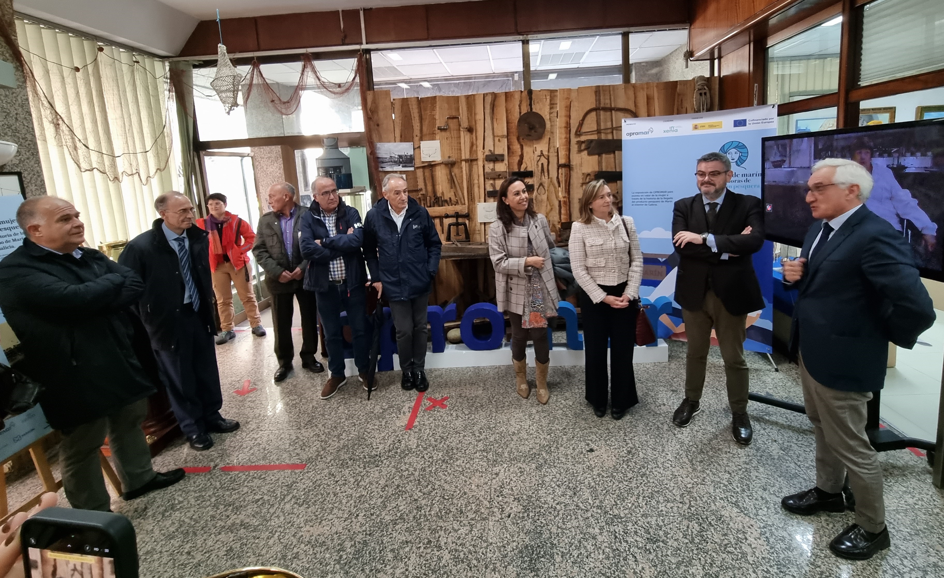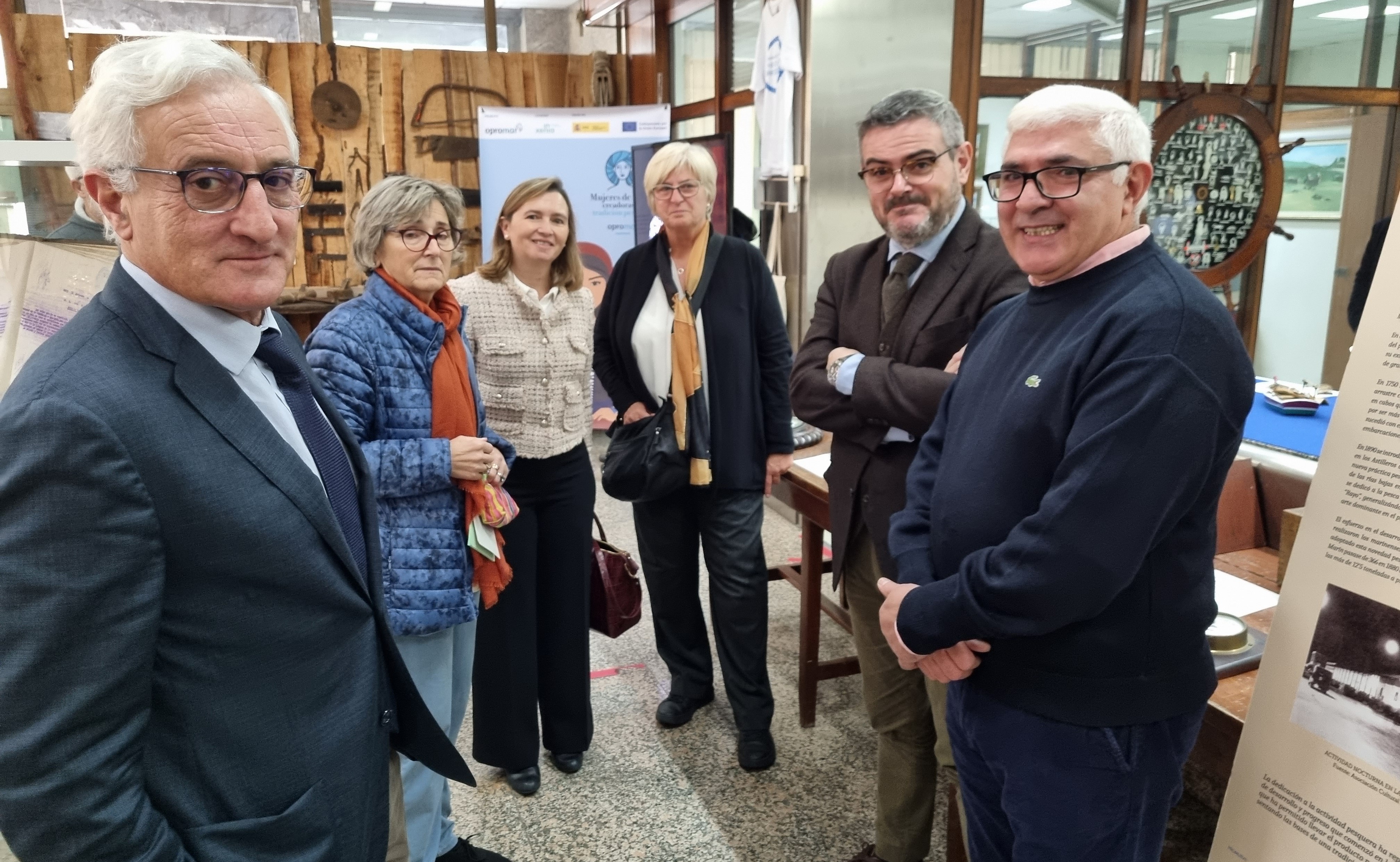 El Museo do Mar de Marín recibió ayer la visita de importantes personalidades del sector pesquero que participaron en la inauguración de la exposición con la que la Organización de Productores de Pesca de Marín (Opromar) destaca la importancia del papel jugado por las mujeres en el sector de la mar y más en concreto de la pesca