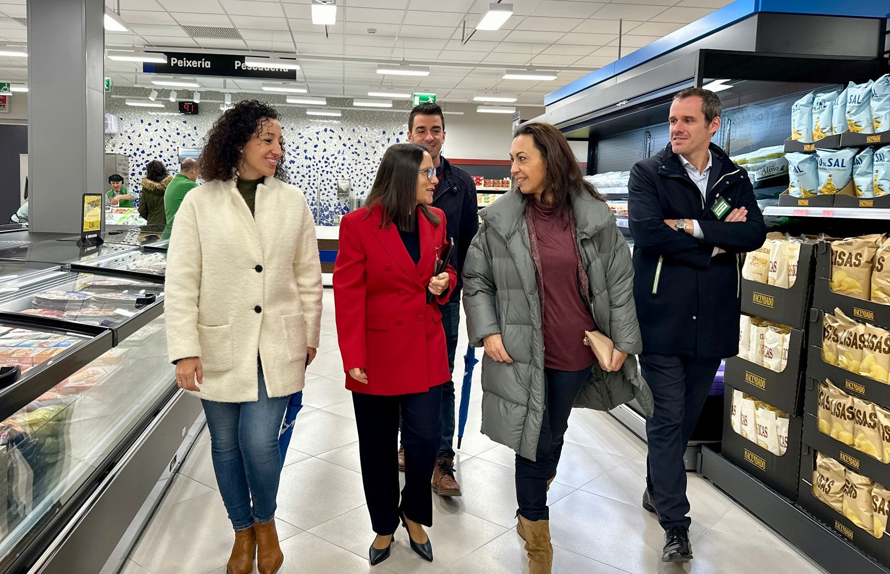 La jornada de inauguración obtuvo una gran acogida ya a que a lo largo del día fueron numerosísimas las personas atraídas por la curiosidad del nuevo edificio y su distribución interior. La alcaldesa María Ramallo acudió junto con Marián Sanmartín, y Pablo Novas, concejales de su grupo, a los primeros momentos de apertura del nuevo supermercado departiendo con los responsables del mismo durante el recorrido por la moderna instalación.