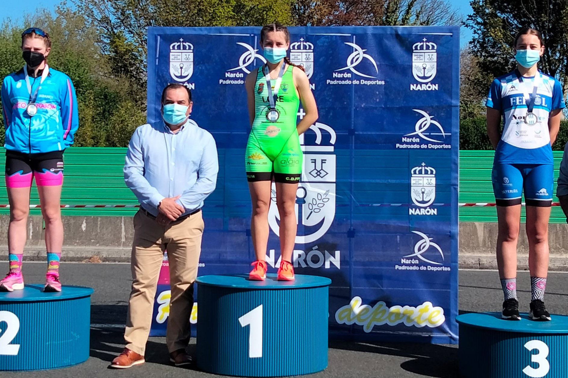 La carrera femenina ganada por la marinense arrojó un pódium formado por Lorena Patiño, como primera y un tiempo de 26´53´´: En segunda posición, Lucía Piñón del Náutico de Narón con 27´08´´ y, en el tercer puesto, María Filgueiras, del Triatlón Ferrol con 27´13´´.