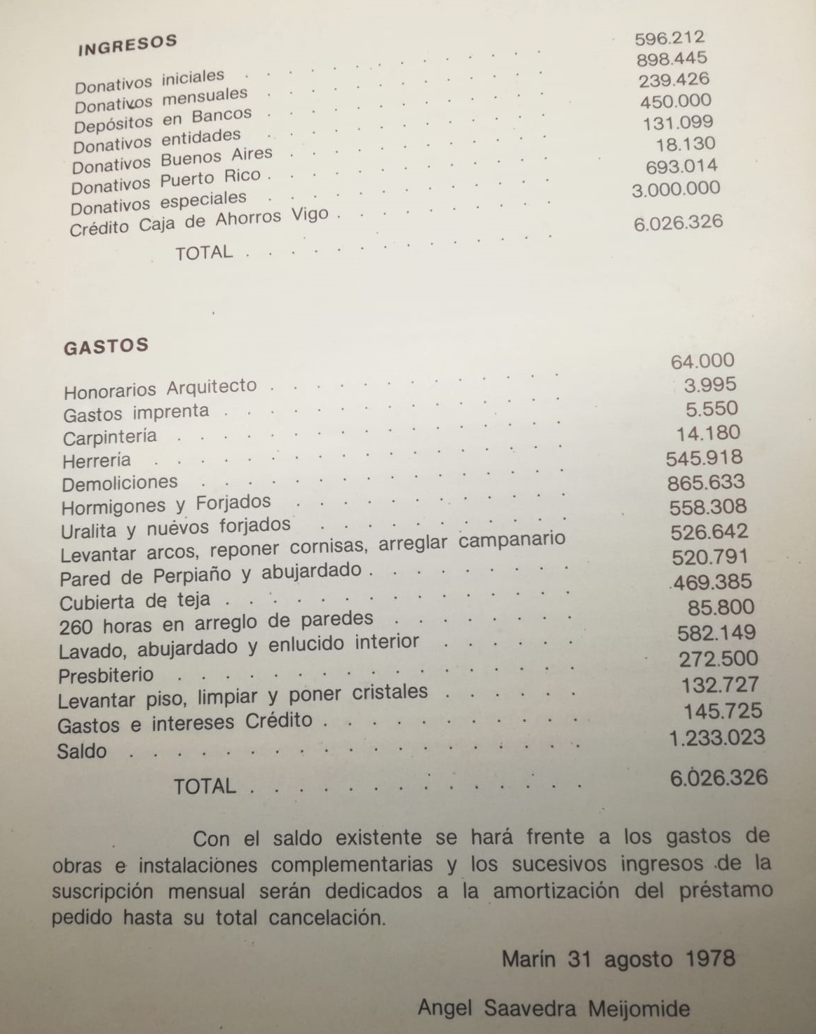 Los donativos populares para la obra superaron los seis millones de pesetas,unos 36.000 euros.
