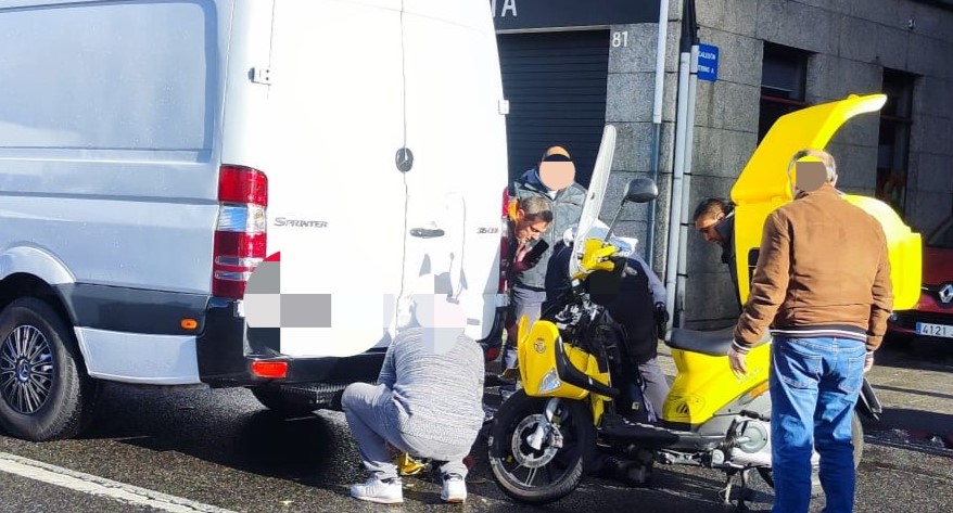 Poco anees de las cuatro de la tarde ocurrió un accidente de circulación en la Avenida de Orense una motocicleta de reparto de paquetería con la parte posterior de un furgón que circulaba por delante.