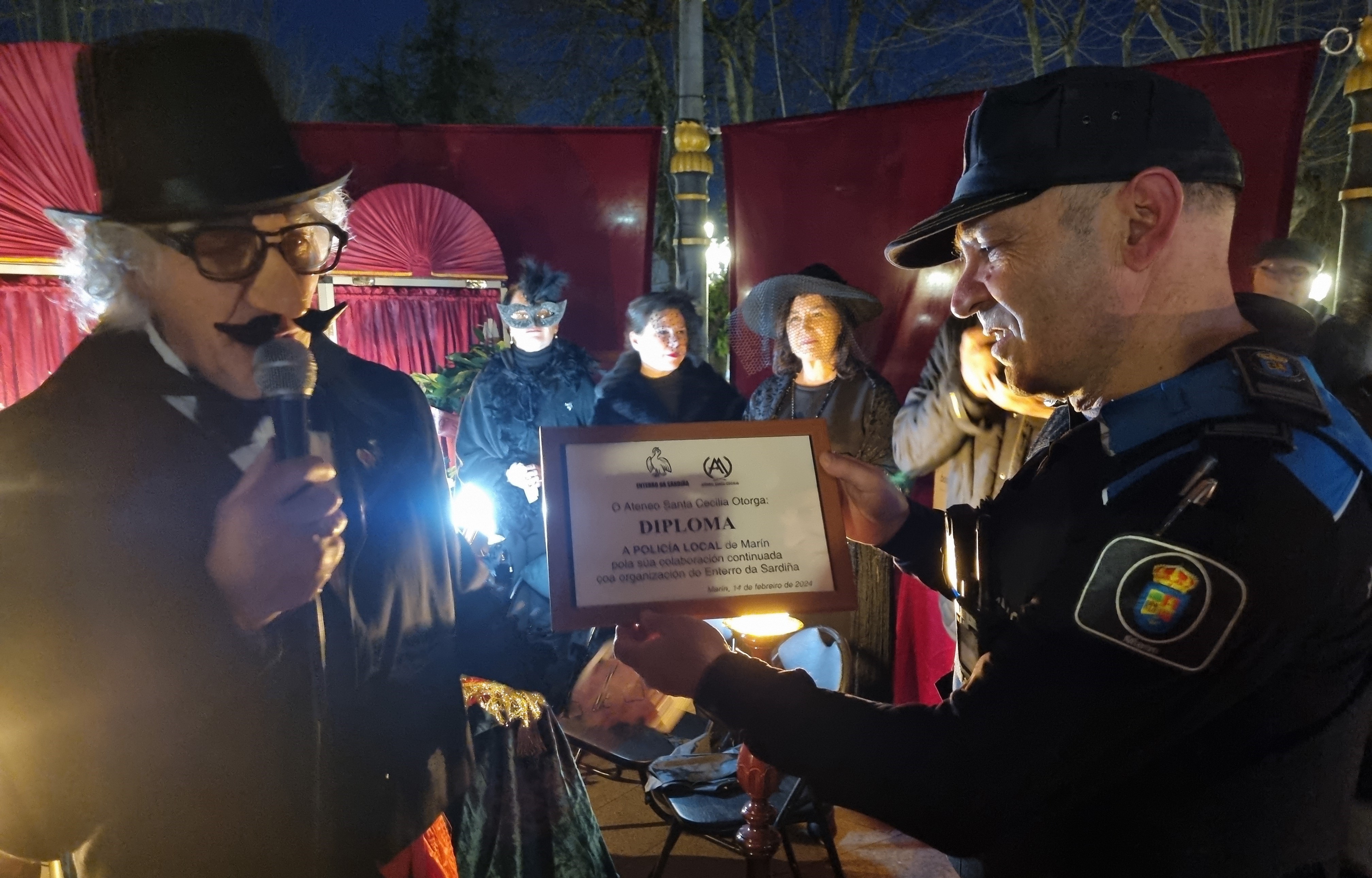 El Ateneo, que cada año rinde un simbólico homenaje a quien participa o colabora de manera especial en el “Enterro”, decidió ese año hacer la mención a los miembros de la Policía Local por su habitual y acertada colaboración que redunda en el buen desarrollo de la fiesta. Recibió el diploma el jefe de la Policía Local, Benigno Area que agradeció en nombre de sus compañeros esta simbólica distinción que reconoce el la labor que durante muchos años se ha venido realizando al respecto.