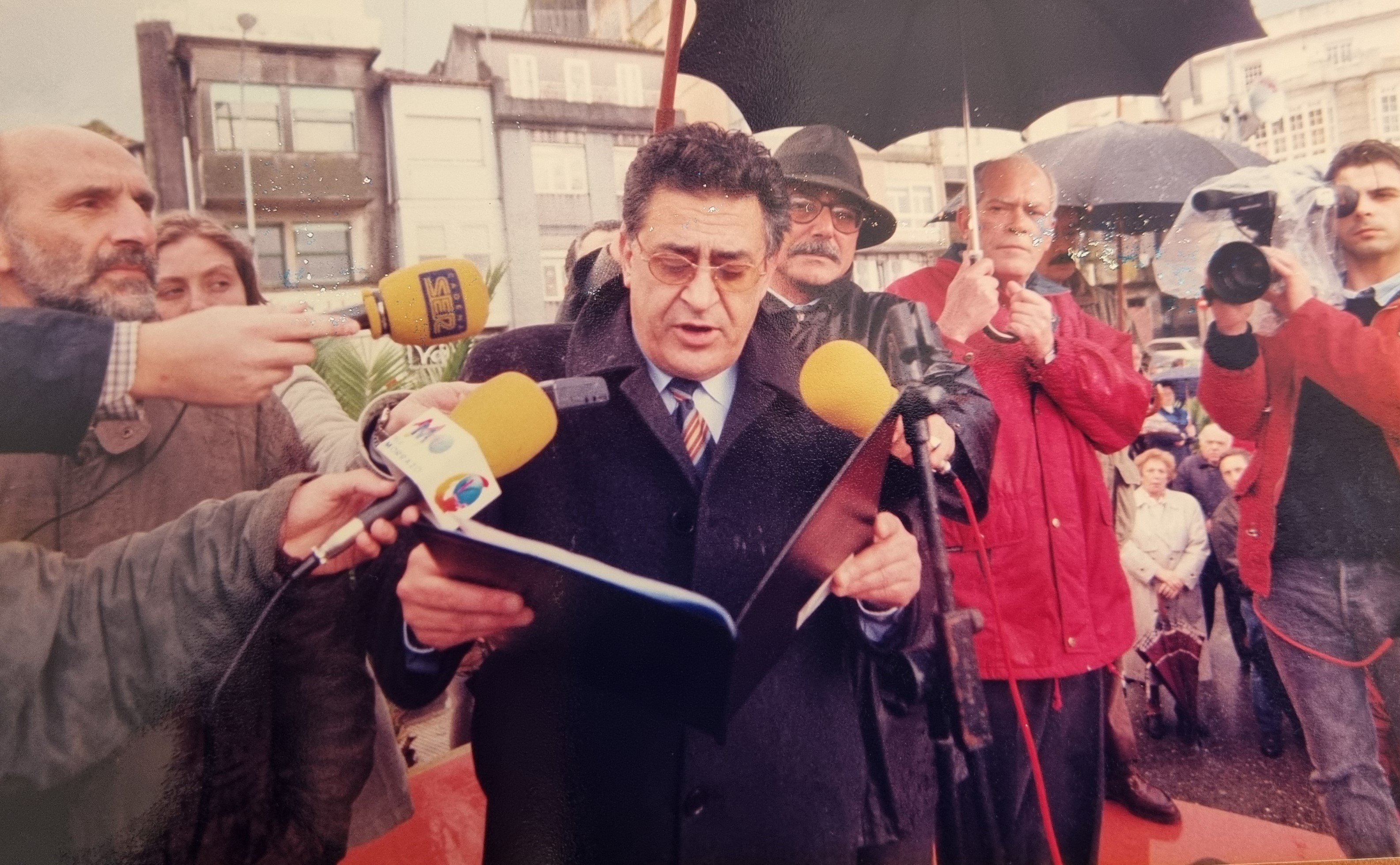 El alcalde Casal (q.e.d.) leyendo el manifiesto de defensa del puerto de Marín
