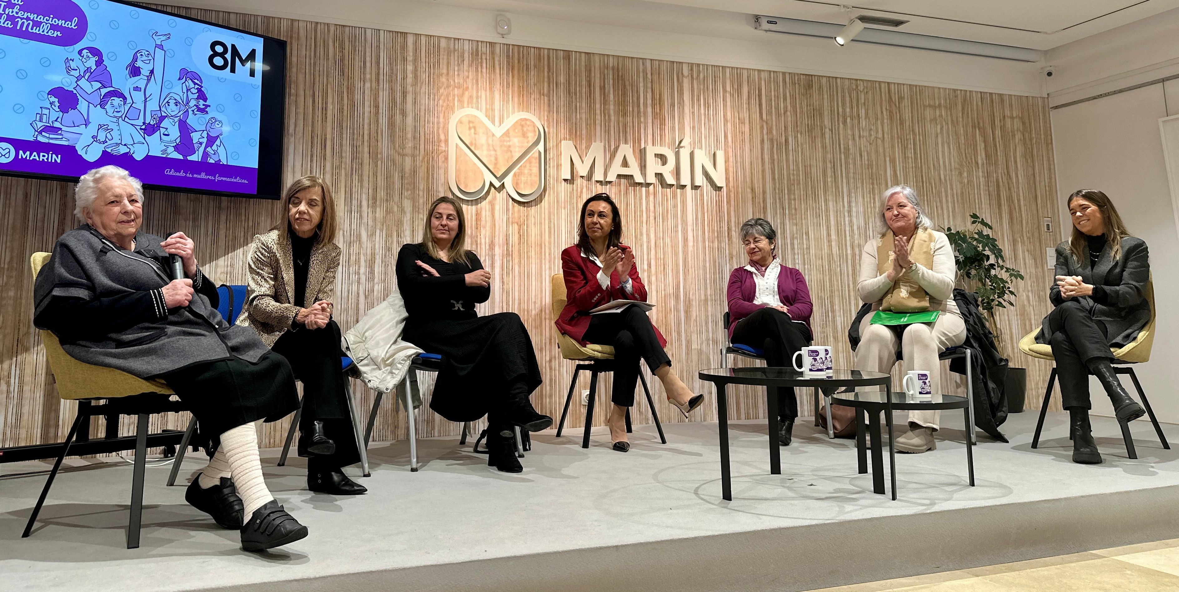 En el acto se encontraban presentes las farmacéuticas marinenses de entre las cuales, intervinieron en el coloquio María Elena Lorenzo Blanco, Begoña Argibay Noal, María del Pilar Souto Meiriño y Rosalía Santiago Touceda y con ellas la presidenta del Colegio Oficial de Farmacia de Pontevedra, Beatriz García Iglesias, quienes hablaron de la importancia de romper los techos de cristal en todos los ámbitos de la vida como es el caso de la gestión de las oficinas de farmacia y contaron los retos que tuvieron que afrontar hasta conseguir situarse en el actual momento profesional.