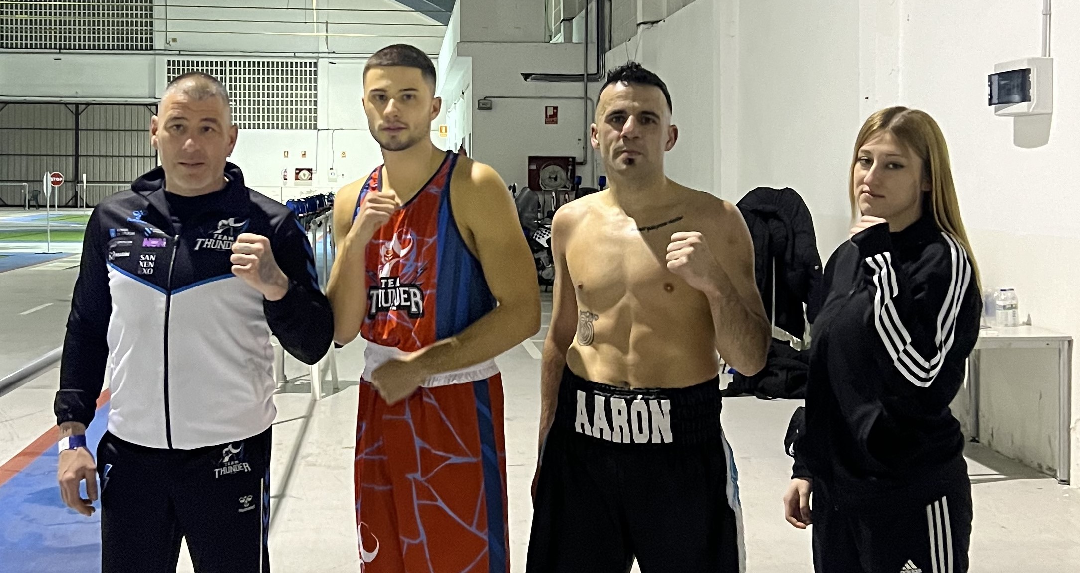 Por otra banda, Aarón González y el recién fichado Xabi Abal, lograron sendas victorias el la velada de Ferrol. El veterano marinense, en categoría neoprofesional, vencería con claridad al ídolo local Barbosa. Un duelo de estilos en el que Aarón con inteligencia supo dominar a su rival desde el primer momento haciéndolo fallar y contraatacando todo con precisión llevándolo a la desesperación. En el último asalto, el dominio era tal que The Thunder estuvo a punto de hacer que su rival apoyase rodilla. Gran comienzo de temporada para Aarón, que viajará la semana próxima a Asturias al 30 aniversario del club Asturbox, uno de los mejores del panorama nacional y que lo celebra con una macrovelada.